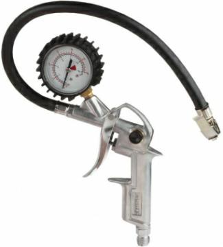 Оснащен манометром и вентилем. Подключаются к пневмосети или компрессору через резьбовое соединение 1/4”. Корпус из прочного алюминиевого сплава. Длина шланга 400 мм.