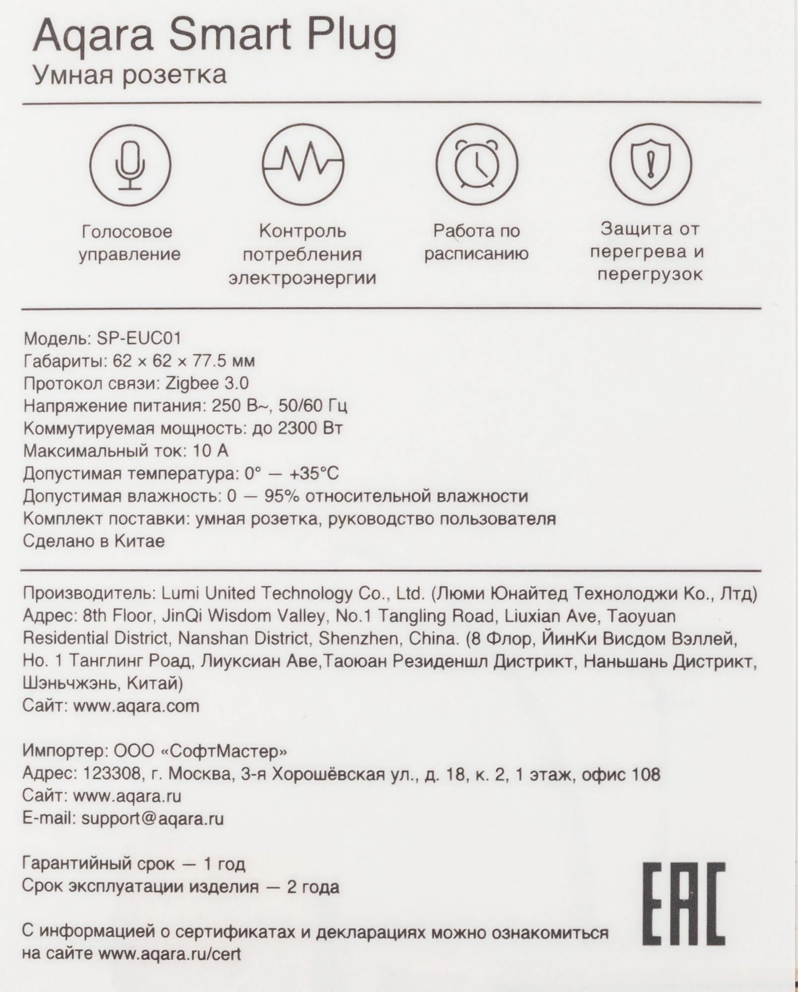 Для работы умной розетки дополнительно требуется Aqara Hub