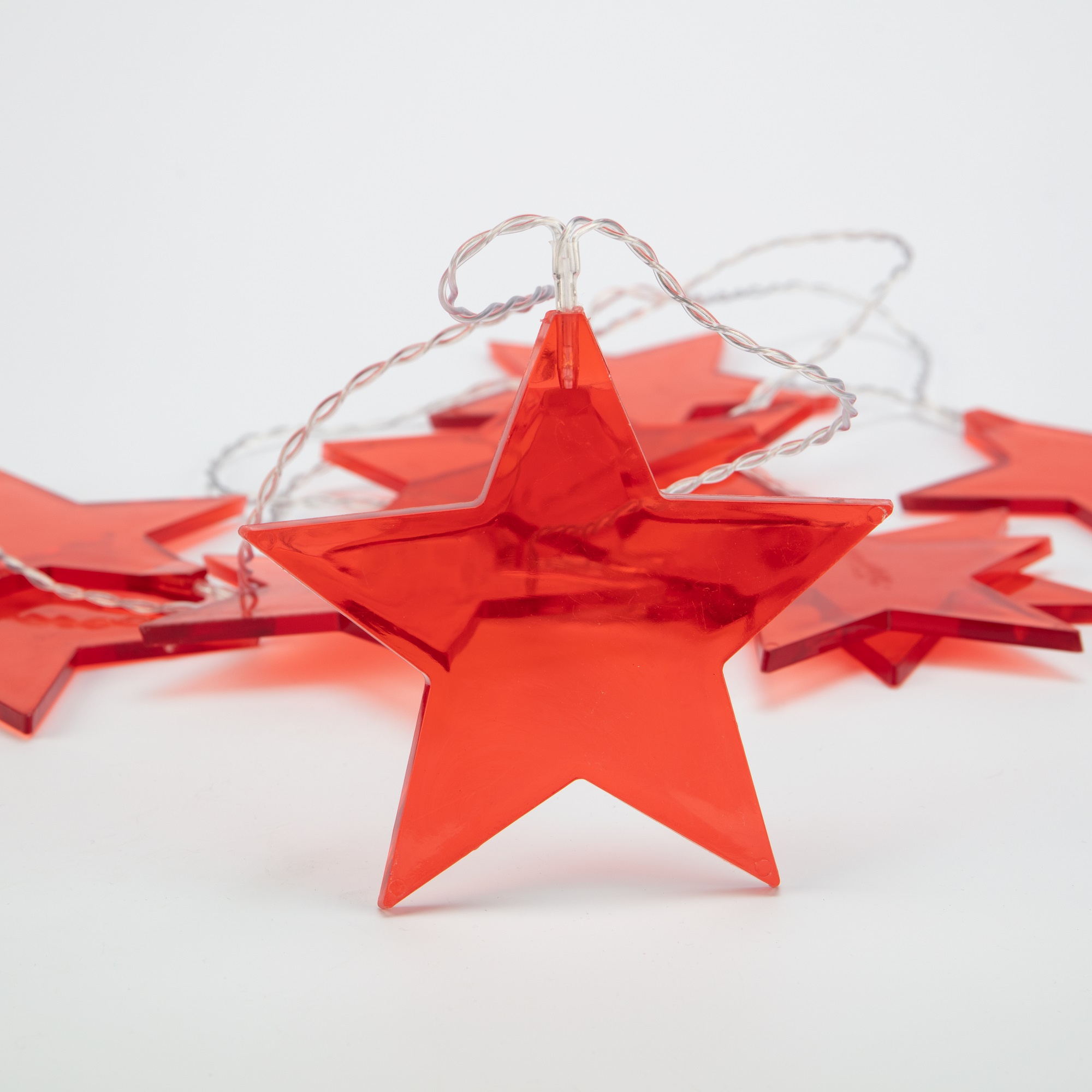 Гирлянда на батарейках с насадками-звездочками относится к оригинальному варианту оформления интерьера. Используется для декорирования елок средней высоты, карнизов, стандартных оконных проемов внутри помещения. Светодиоды насыщенного сияния не нагреваются и минимально расходуют электроэнергию.