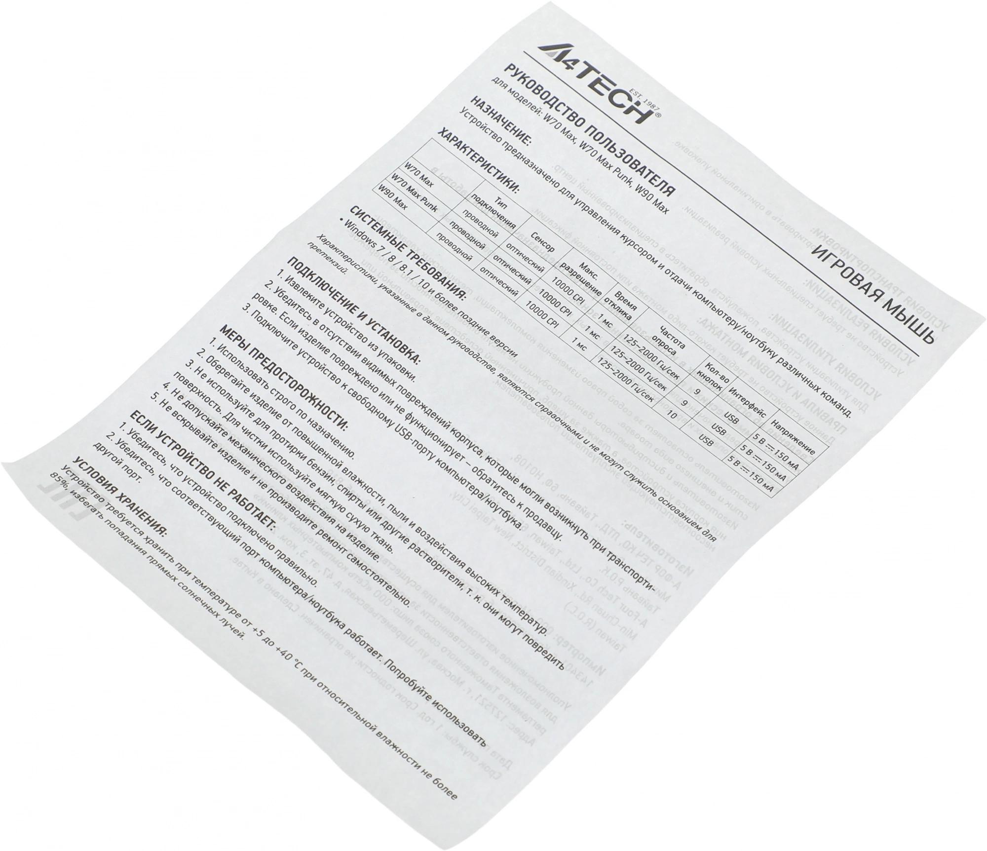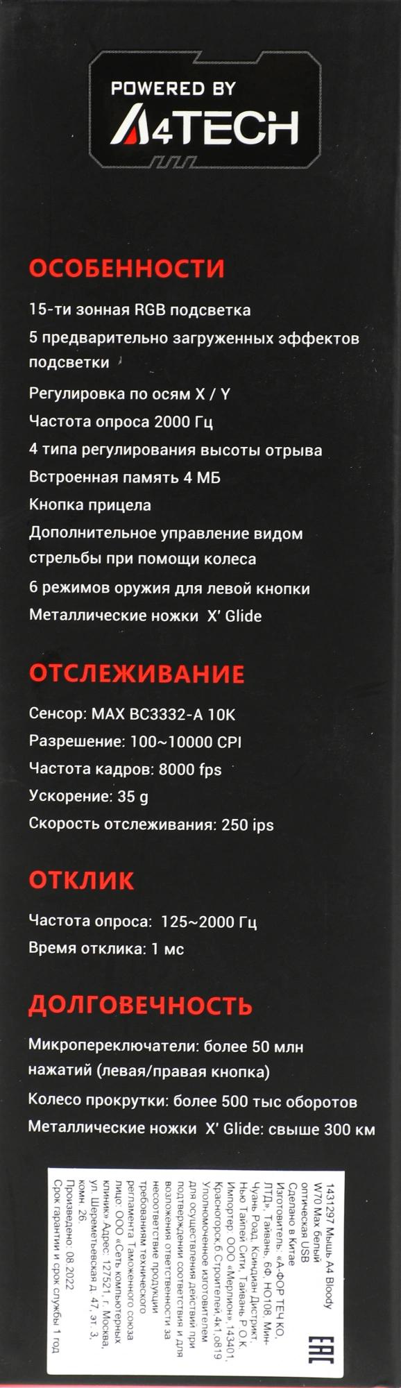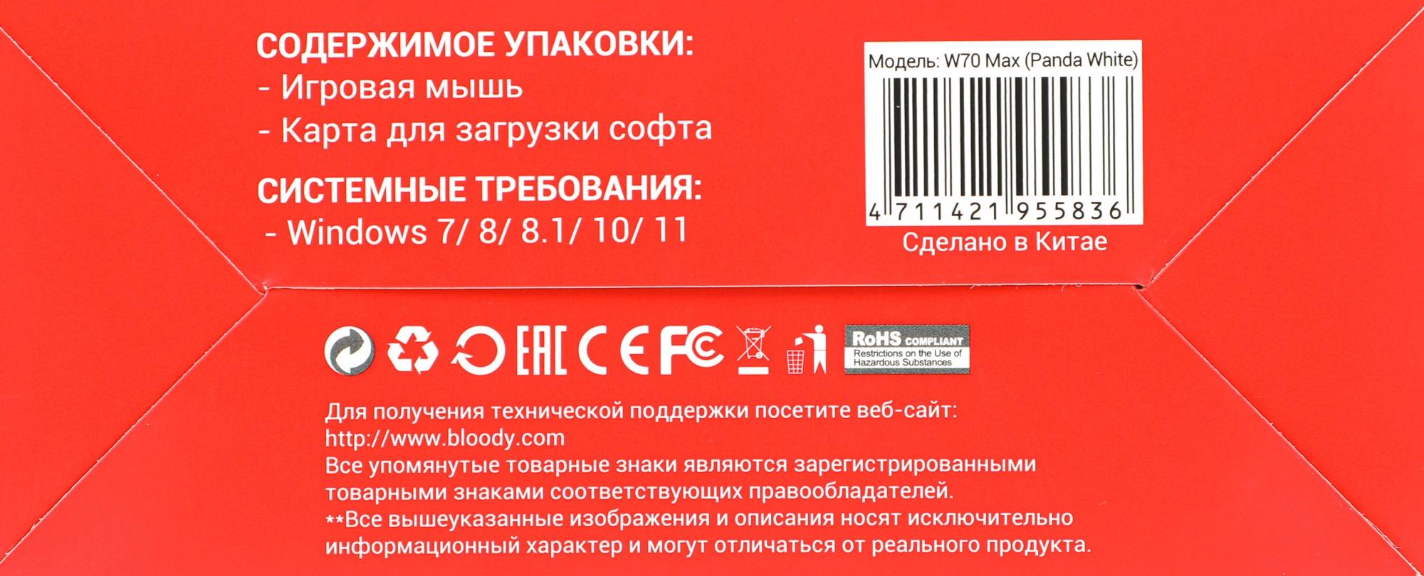 Мышь A4Tech Bloody W70 Max белый/черный оптическая 10000dpi USB 10but (W70 MAX (PANDA WHITE))