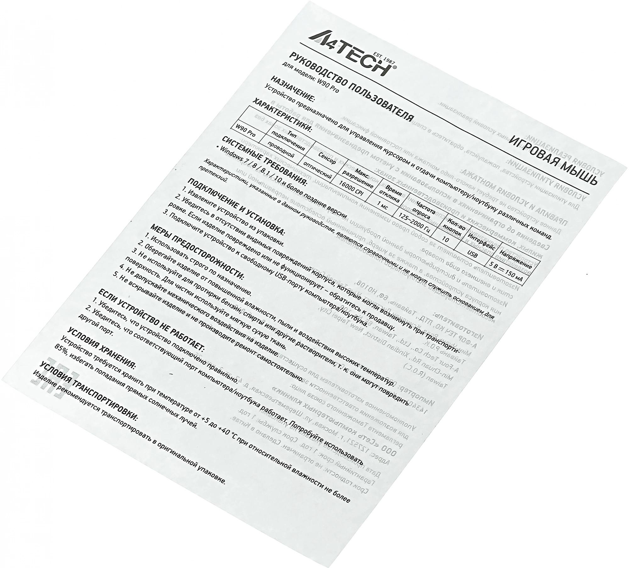 Мышь A4Tech Bloody W90 Pro черный оптическая 16000dpi USB 10but