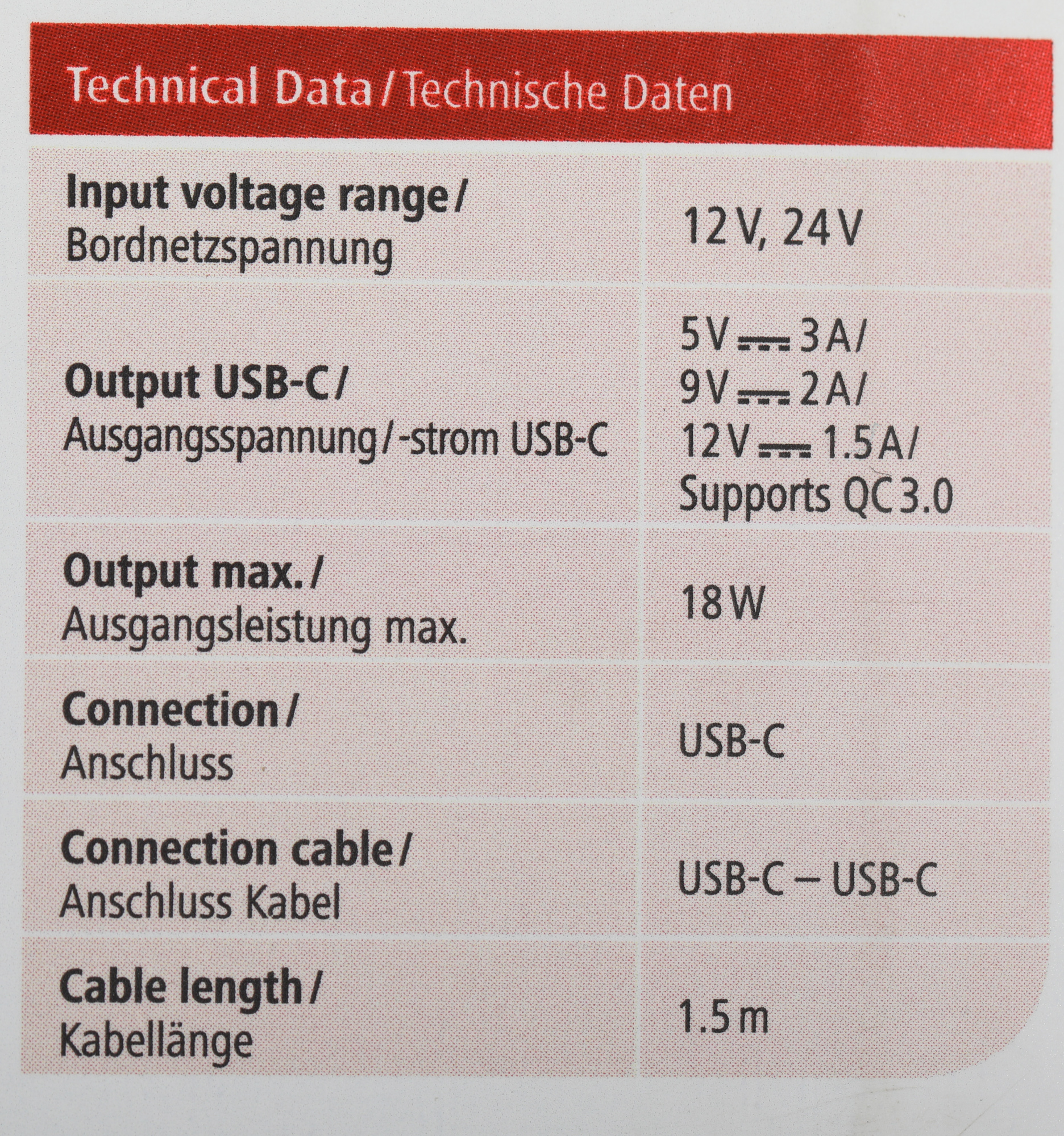 Автомобильное зарядное устройство от прикуривателя. Максимальная выходная мощность 18 Вт