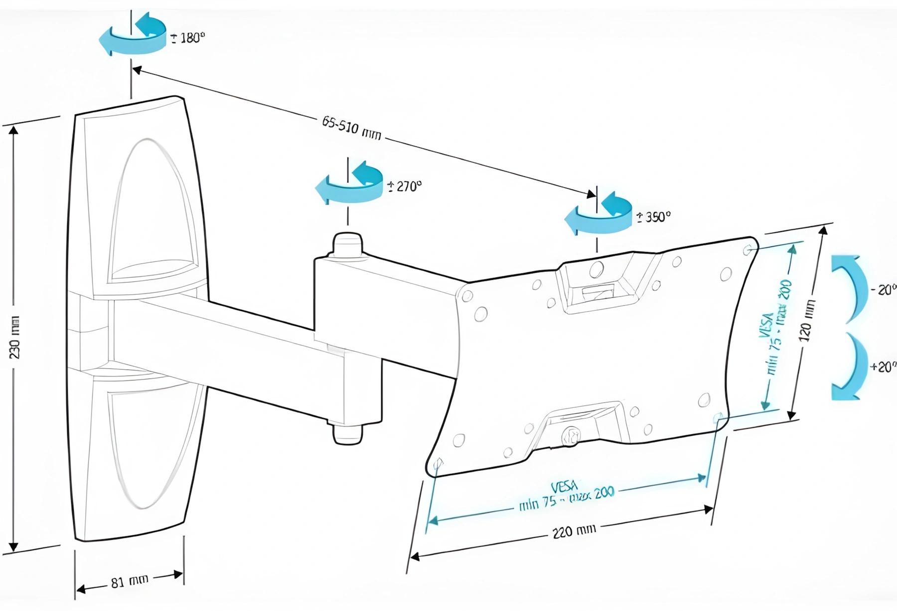 Кронштейн для телевизора Holder LCDS-5064 белый 10"-32" макс.30кг настенный поворотно-выдвижной и наклонный