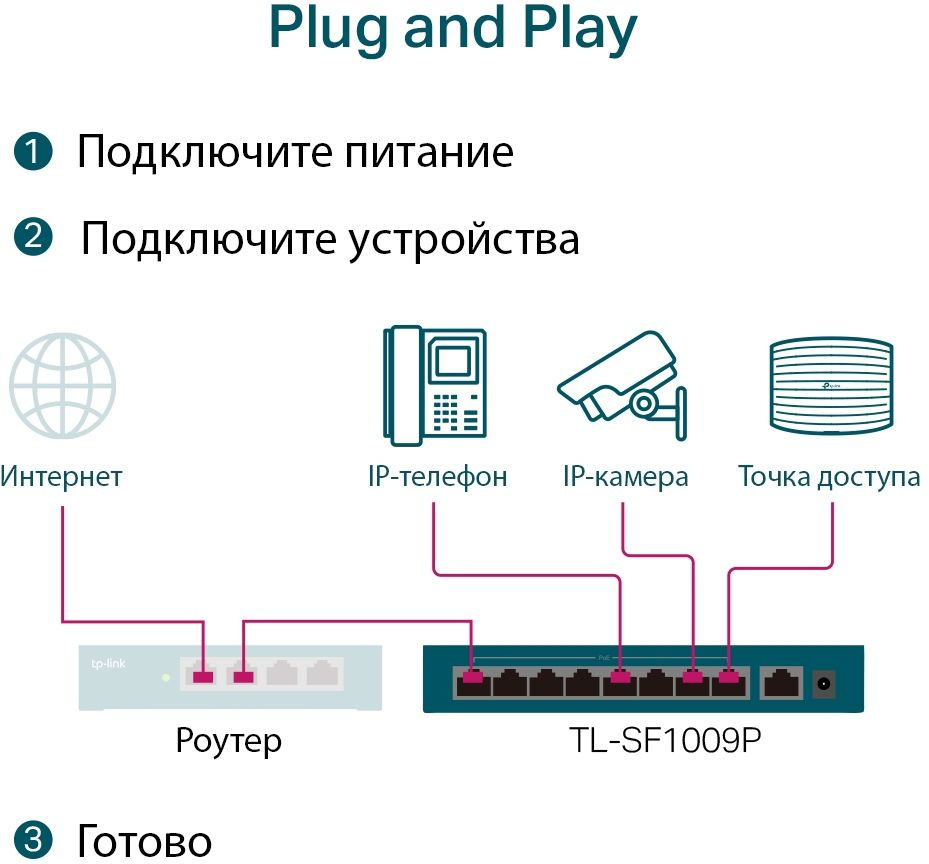 Коммутатор TP-Link TL-SF1009P 9x100Мбит/с 8PoE+ 65W неуправляемый