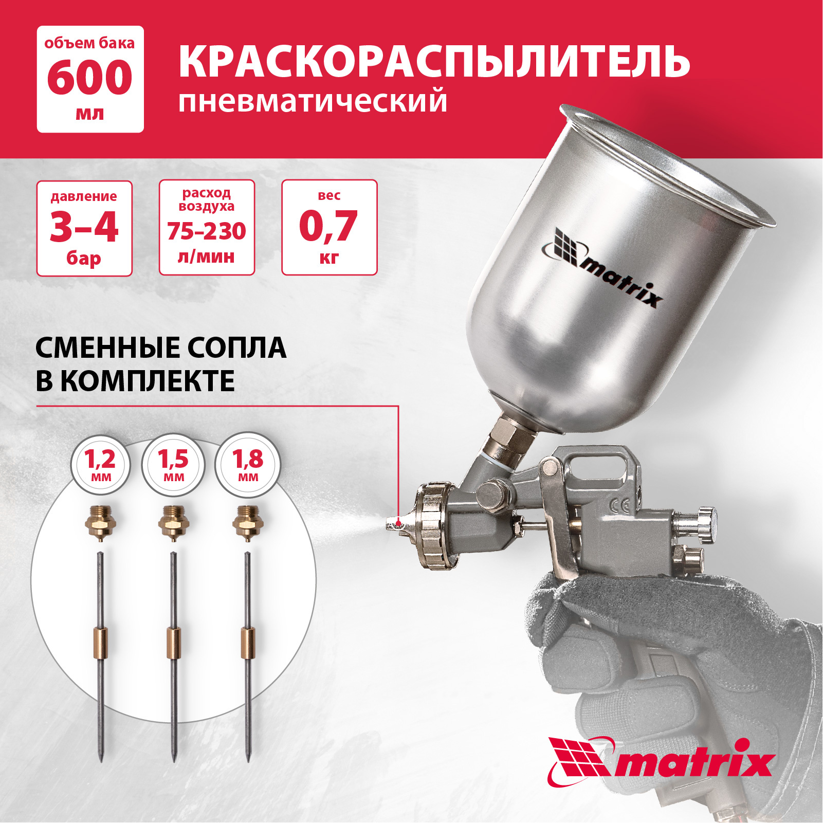 Краскораспылитель, Сопла 1.2, 1.5, 1.8 мм, Упаковка