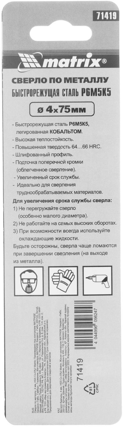 Сверла изготовлены методом вышлифовывания профиля, имеют несколько увеличенную сердцевину. Поперечная режущая кромка удалена при помощи подточки. Данные сверла изготовлены из кобальтовой стали. К данному инструменту предъявляются повышенные требования по точности и качеству изготовления.