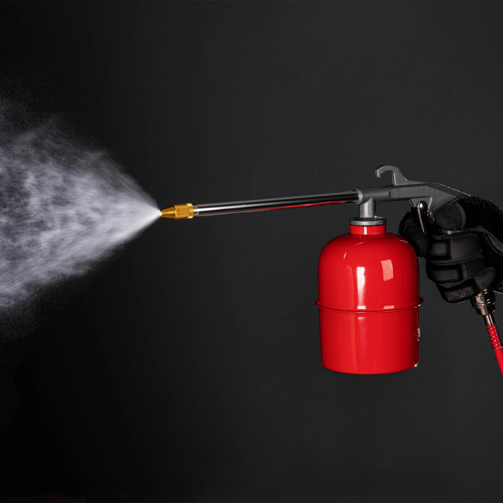 Удлиненное сопло - для работы в труднодоступных местах. Малый вес позволяет комфортно работать в течение длительного времени. Низкая пожаро- и взрывоопасность рабочего процесса.