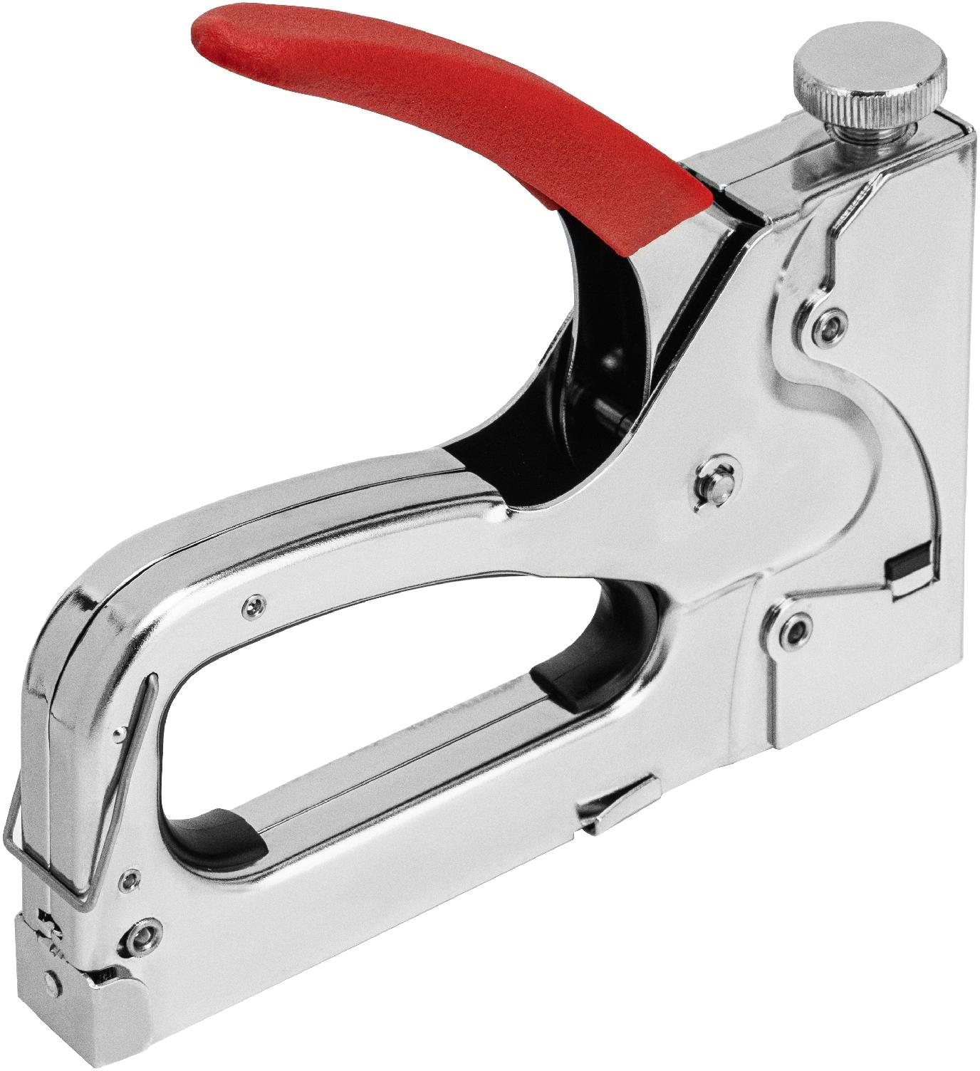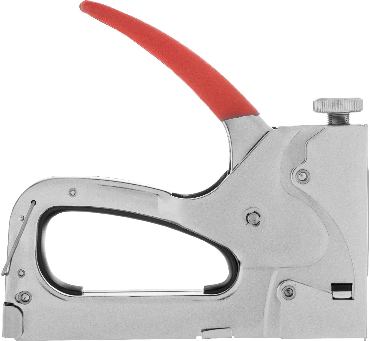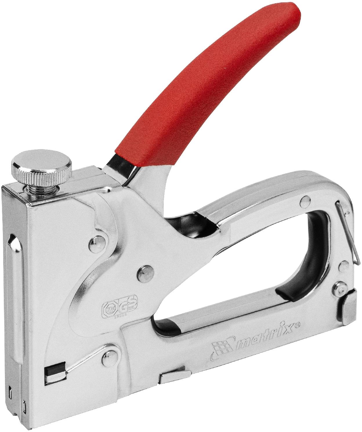 Ручки четырехфункционального мебельного степлера MATRIX MASTER 40901 очень удобны для надежного удержания инструмента в руках.Обладают надежной защитой от случайного выстрела скобой за счет металлической петли.