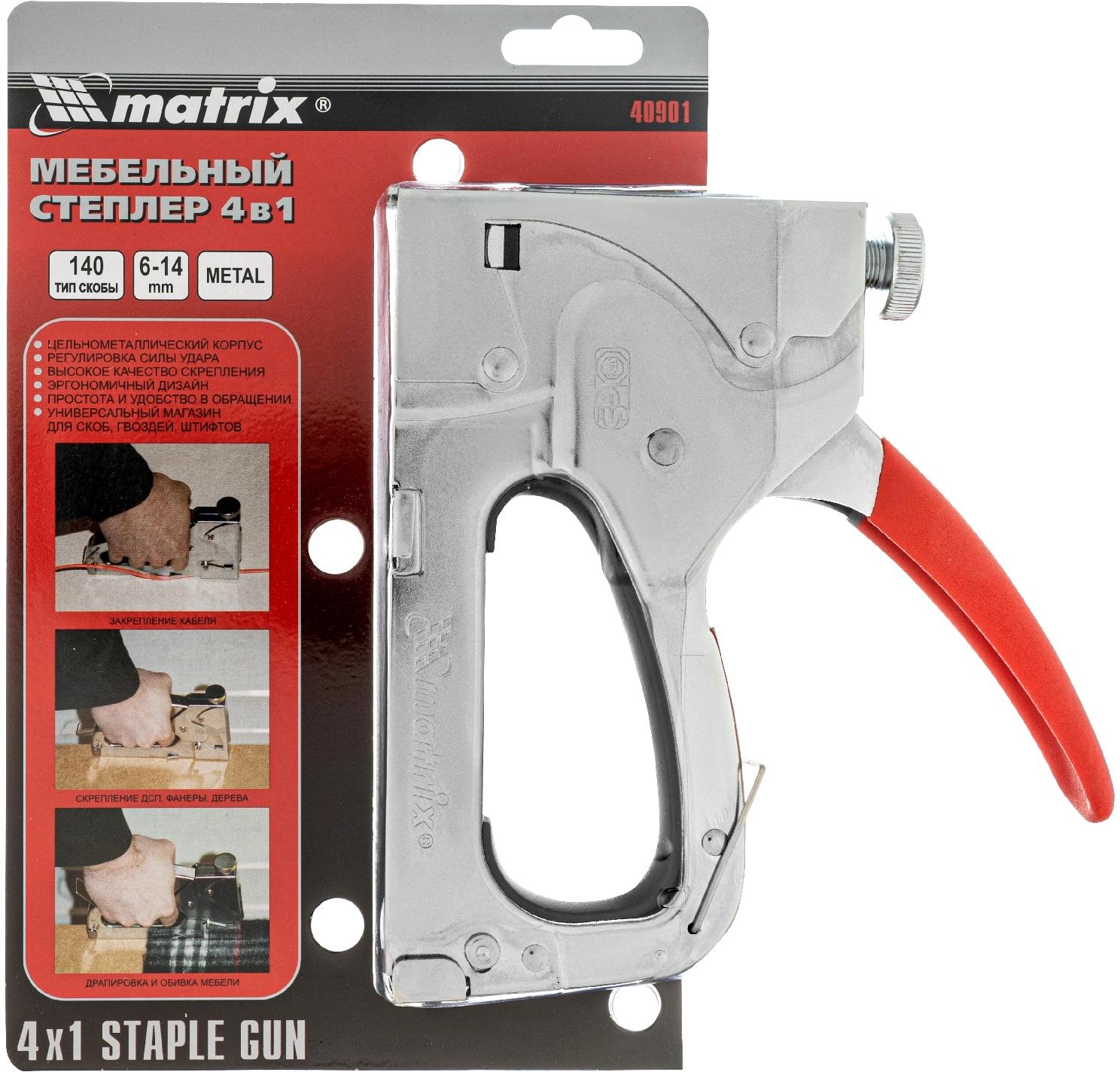 Степлер ручной Matrix 40901 скобы тип 140 (6-14 мм) / 36 гвозди тип 300 / 500