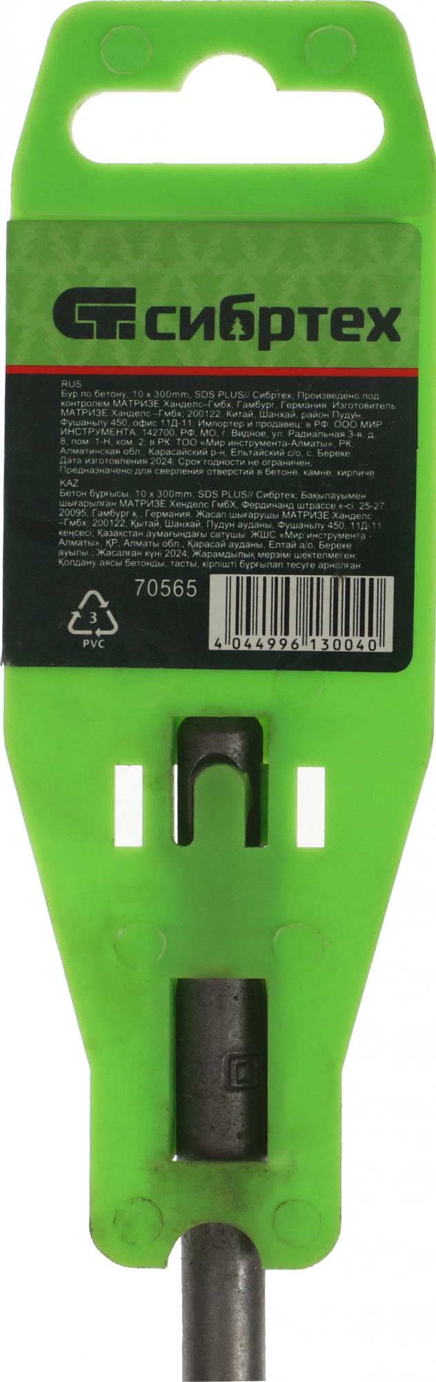 Бур Сибртех 70565 по бетону Д=10мм Дл=200мм (1пред.) для перфораторов