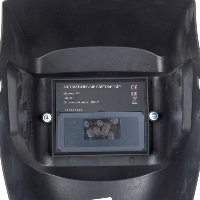 Маска типа «хамелеон» Сибртех Ф1, надежно защитит от искр, брызг и вредных излучений сварочной дуги при сварочных работах: MIG, MAG/CO2, SMAW, TIG, PLASMA. Имеются 2 независимых фотодатчика. Храповой механизм регулировки посадки оголовья. Корпус защитного щитка изготовлен из жароупорной пластмассы.