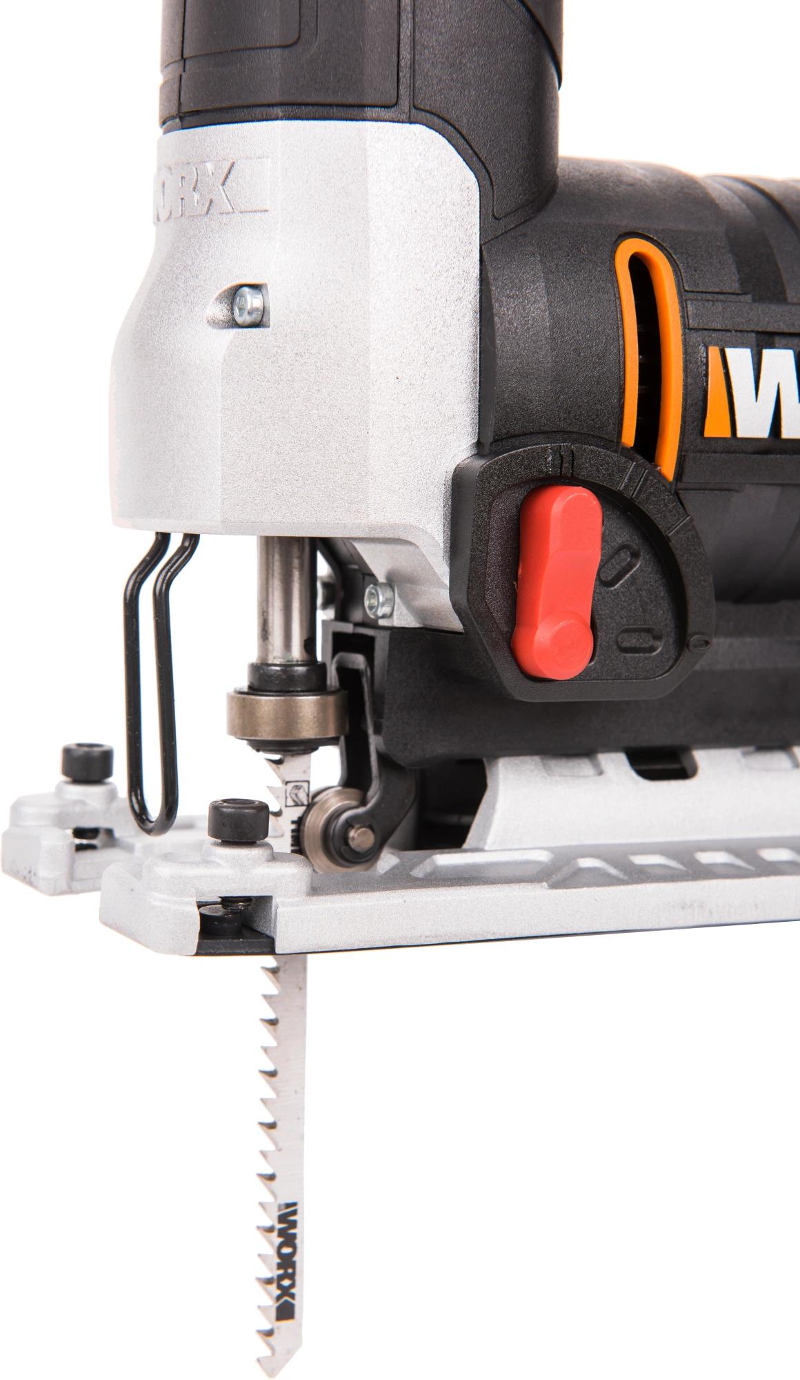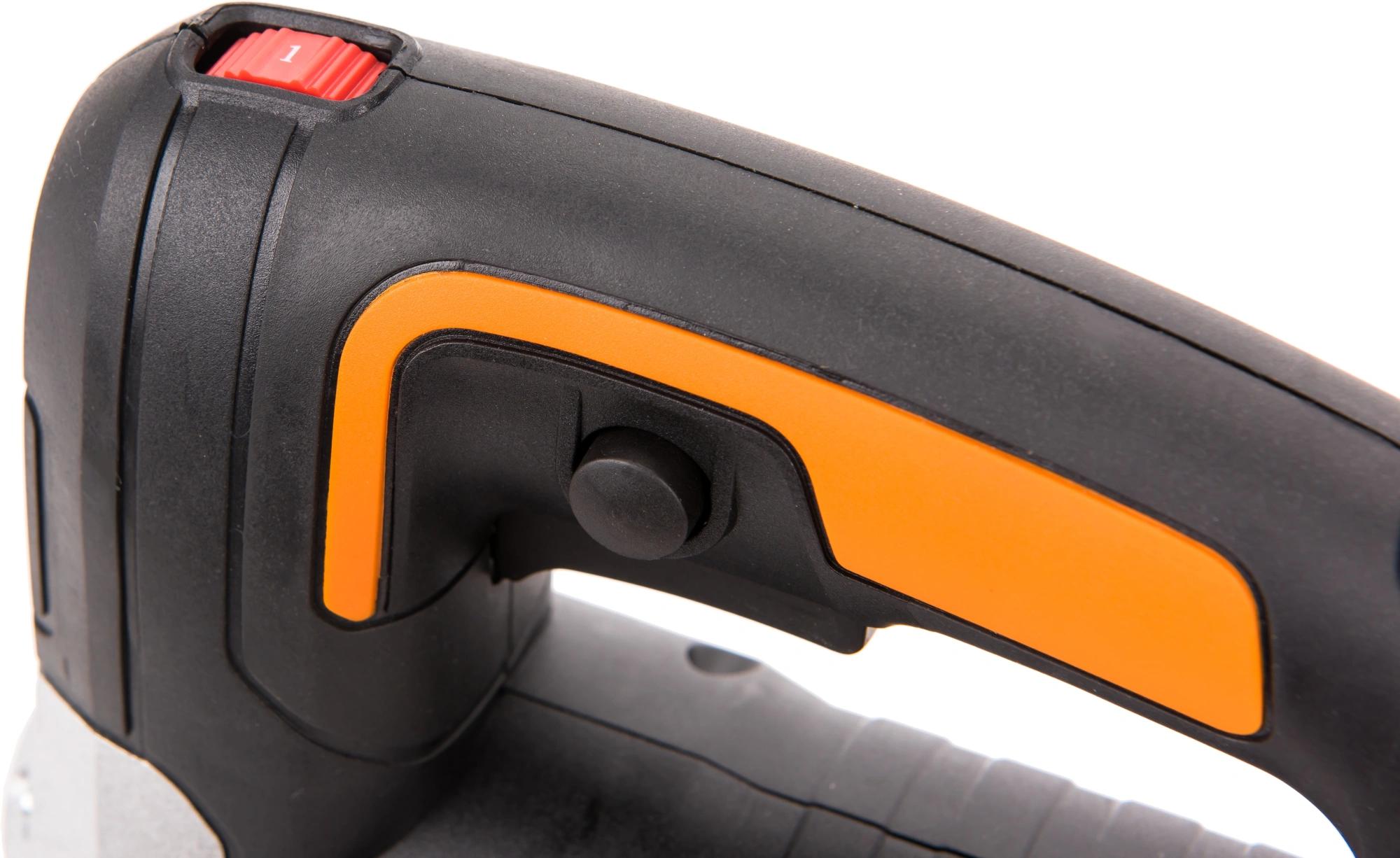 Лобзик имеет эргономичную форму, что обеспечивает комфортную работу на протяжении долгого времени. Безинструментальная смена пилки. Регулируемая база для резки под углом, способность скоса пиления - от 0 до 45 градусов.