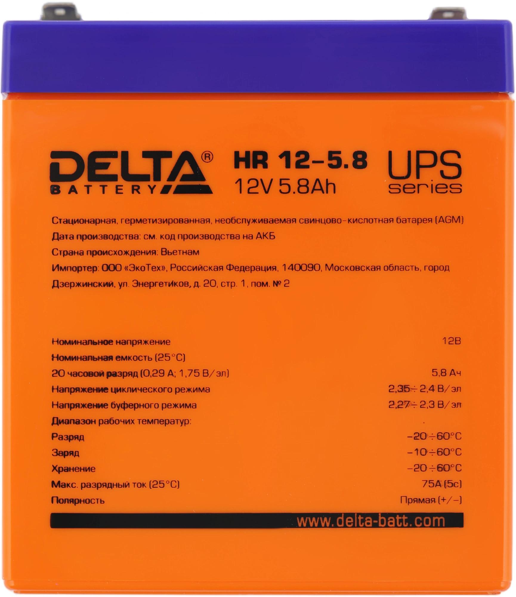 Свинцово-кислотные аккумуляторы DELTA серии HR являются герметизированными, необслуживаемыми с системой рекомбинации газов (VRLA). Изготавливаются по технологии AGM (электролит, абсорбированный в сепараторе).