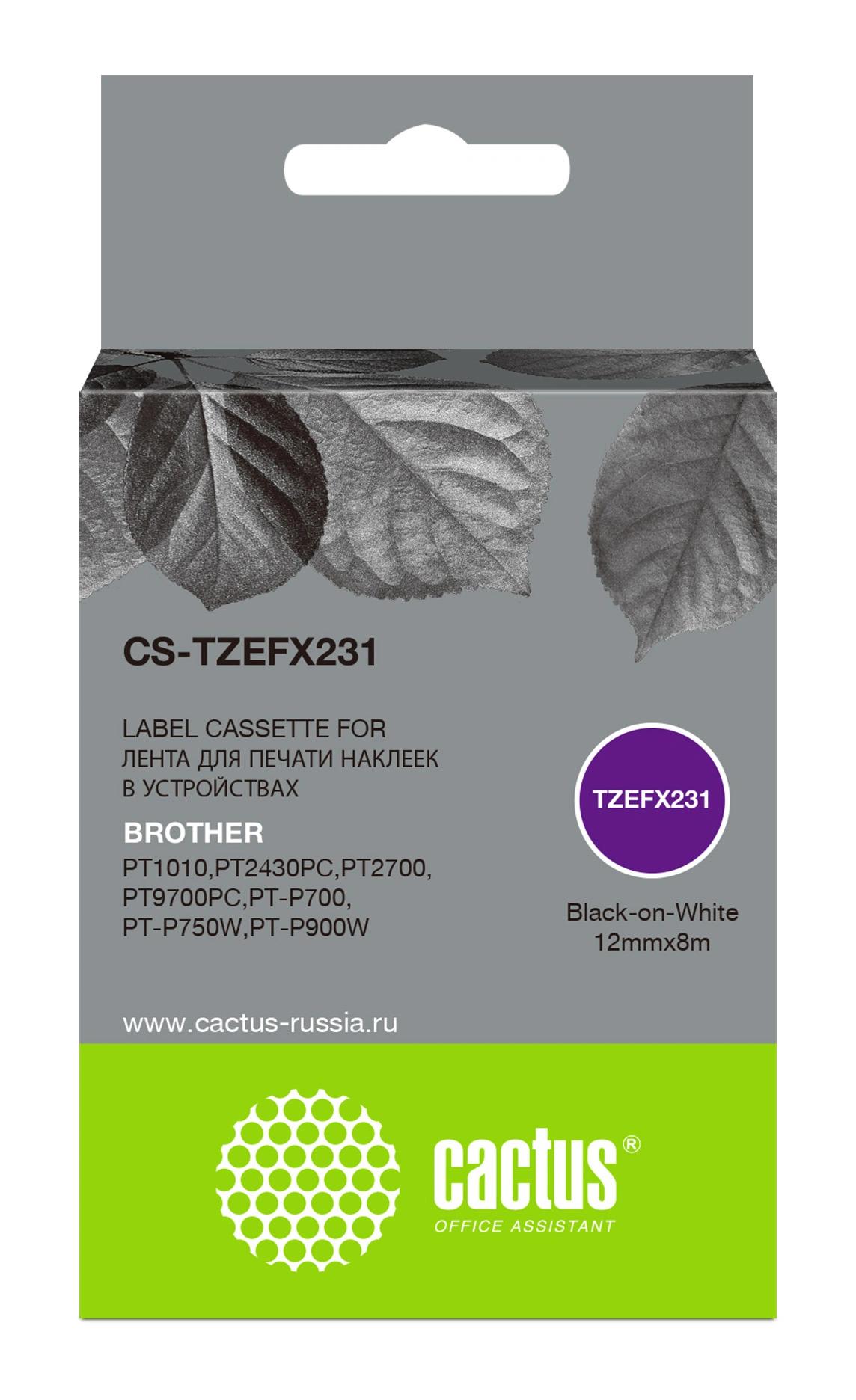 Картридж ленточный Cactus CS-TZEFX231 TZe-FX231 черный на белом 12x8 для Brother 1010/1280/1280VP/2700VP