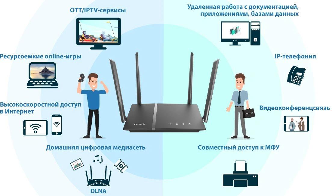 Beamforming, DHCP-сервер, DLNA, Dynamic DNS (DDNS), FTP-сервер, QoS, UPnP, VPN, Wake-on-LAN, WPS, протокол IPv6