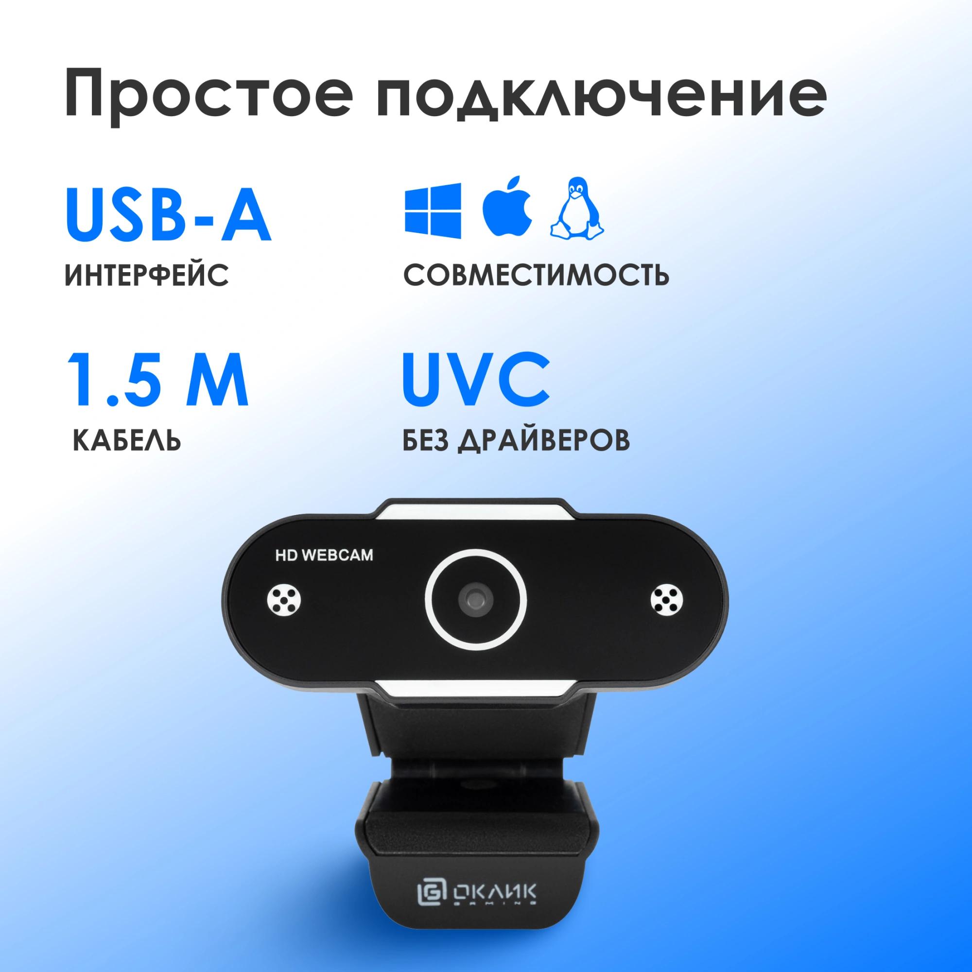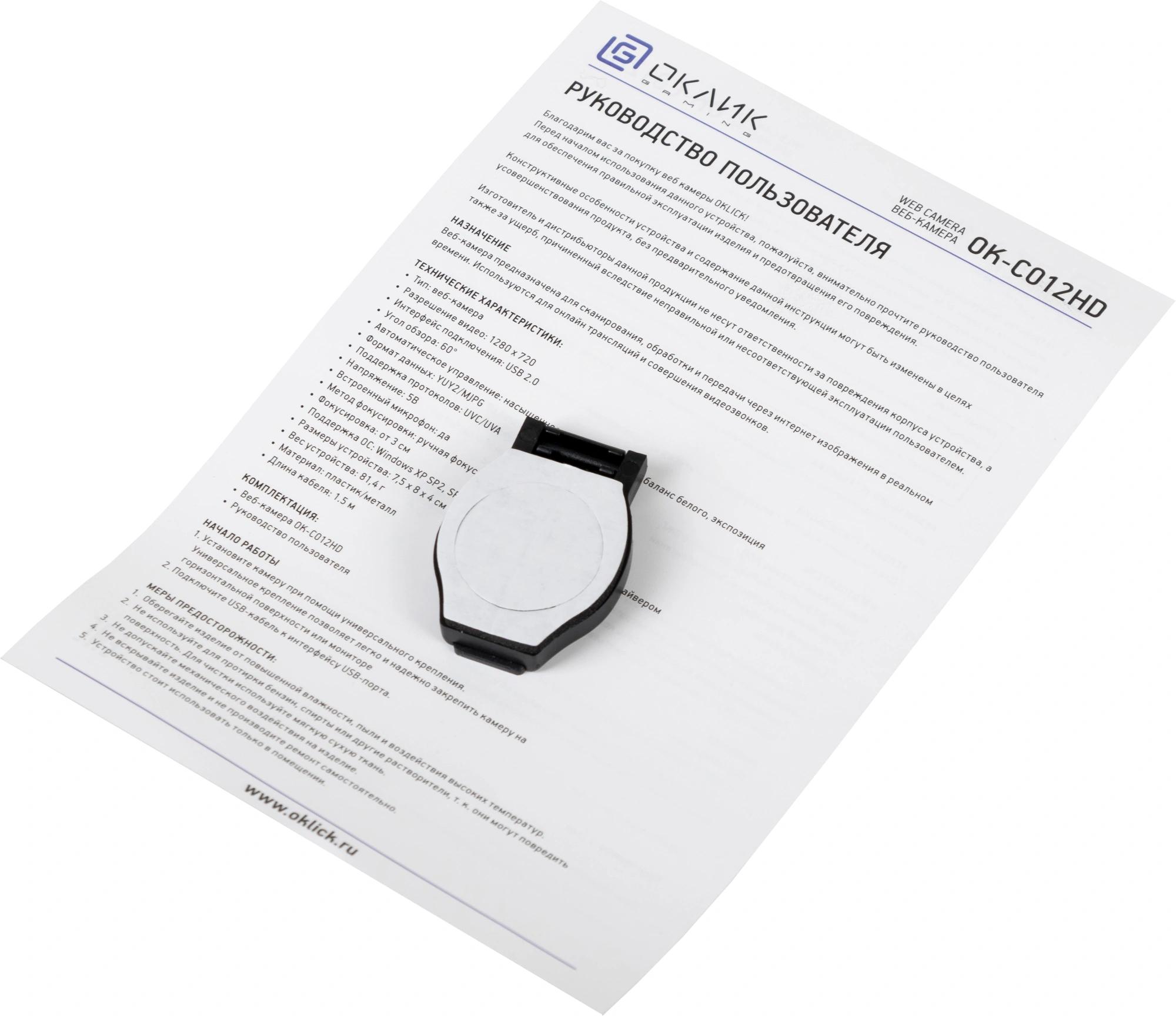 Камера Web Оклик OK-C012HD черный 1Mpix (1280x720) USB2.0 с микрофоном