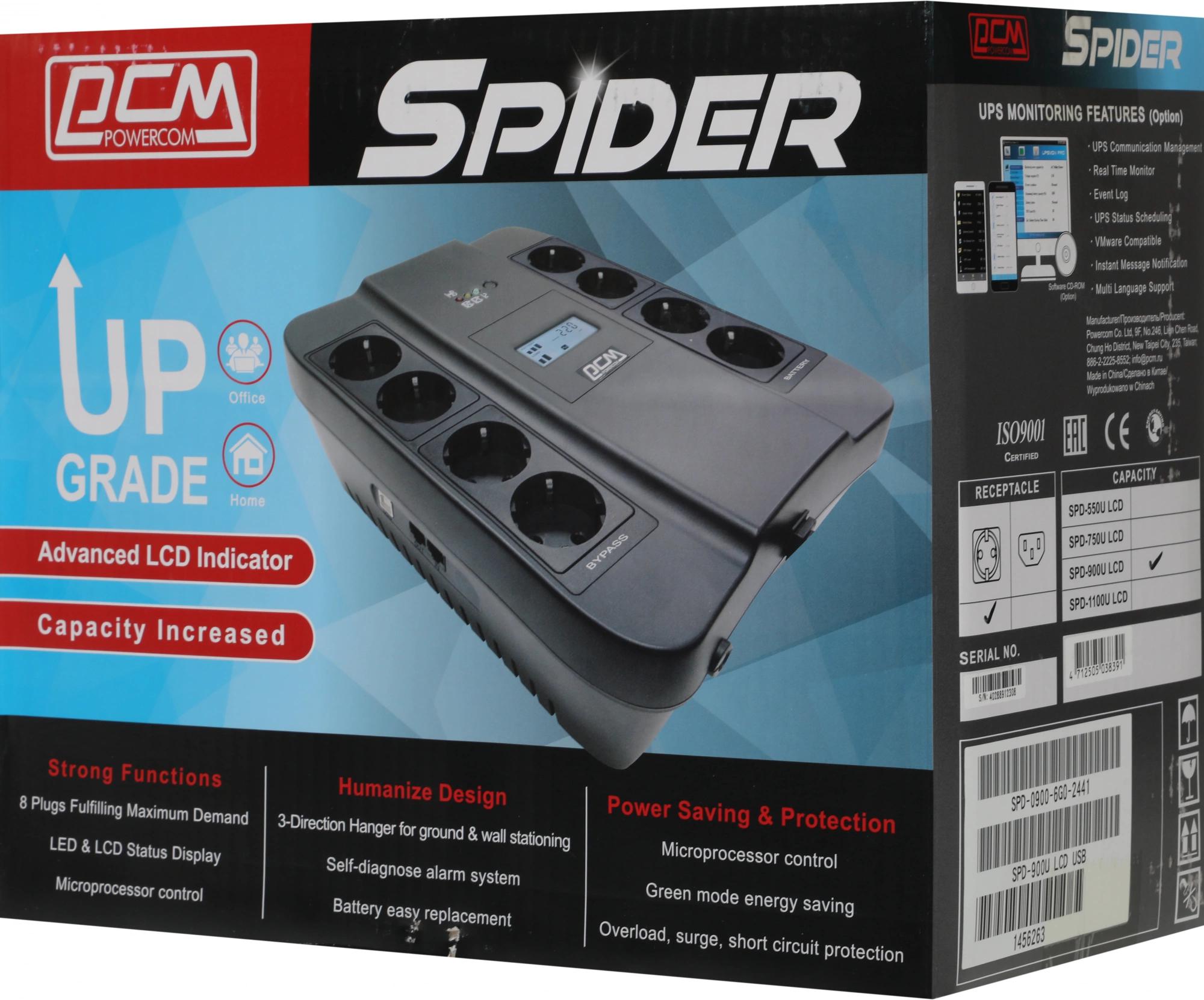Источник бесперебойного питания Powercom Spider SPD-900U LCD USB 540Вт 900ВА черный