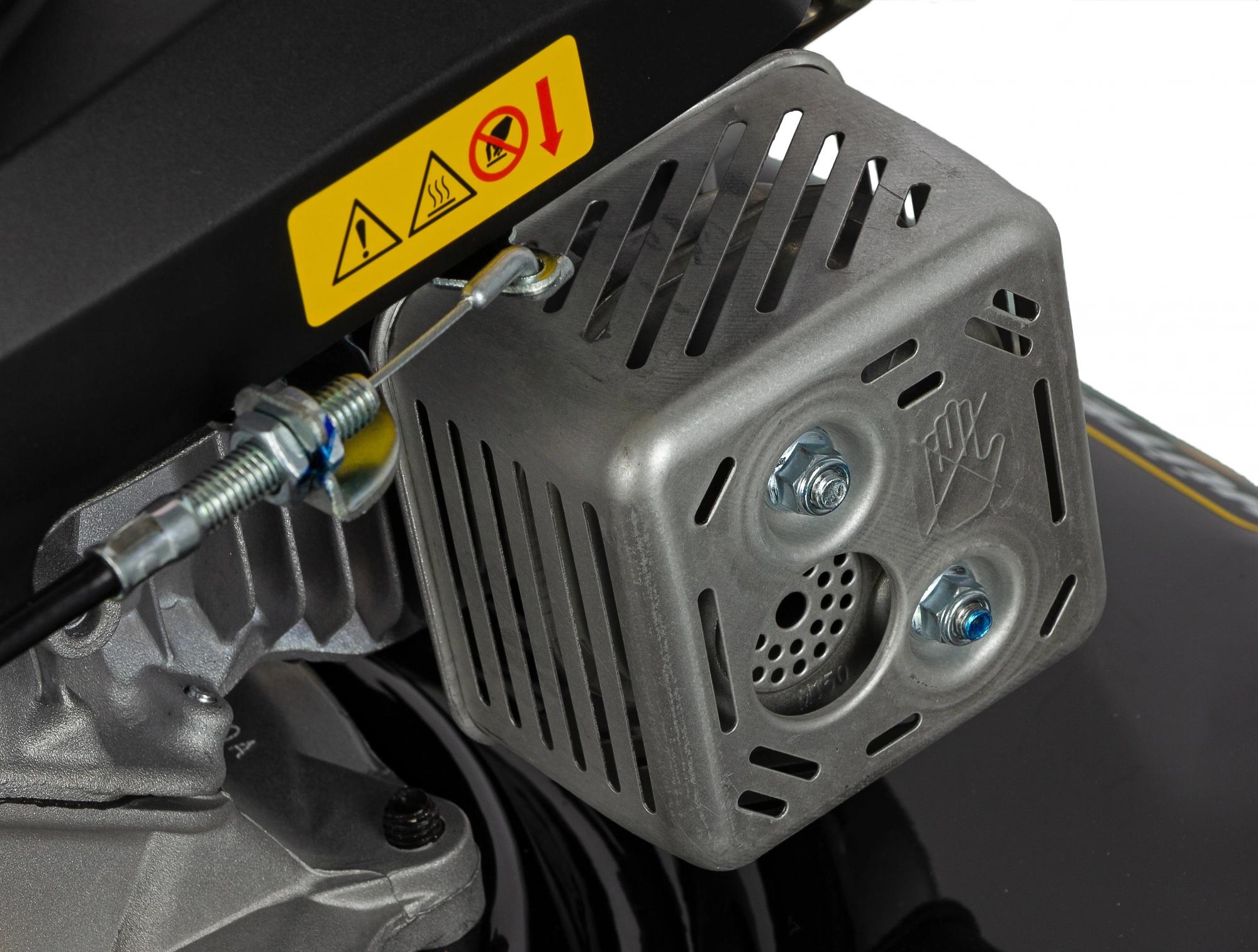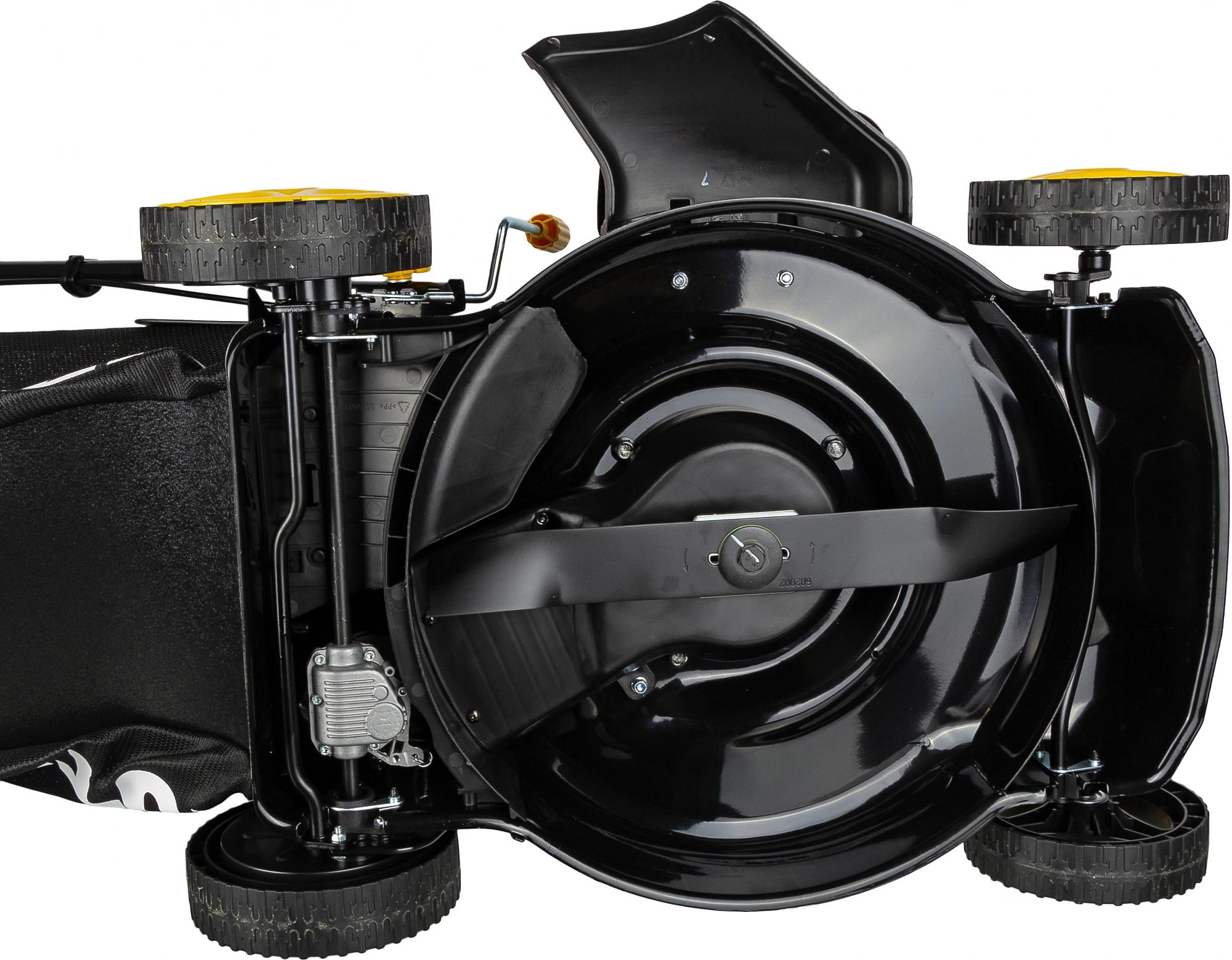Тканевый травосборник рассчитан на 60 л, что позволит делать меньше остановок в работе. Газонокосилка работает на бензиновом двигателе, отличающемся повышенной мощностью и эффективностью в работе.