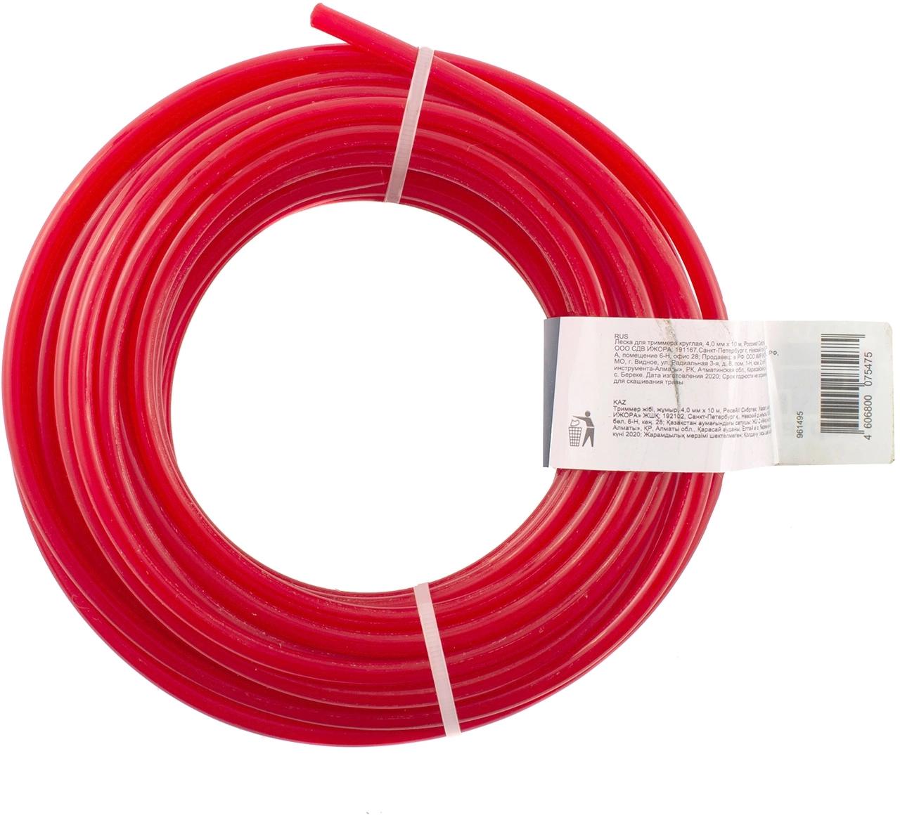 Леска для триммера с круглым сечением и длиной 10 метров, диаметром 4 мм применяется в электрических и бензиновых триммерах. Изготовлена из нейлона. Имеет круглую форму сечения.