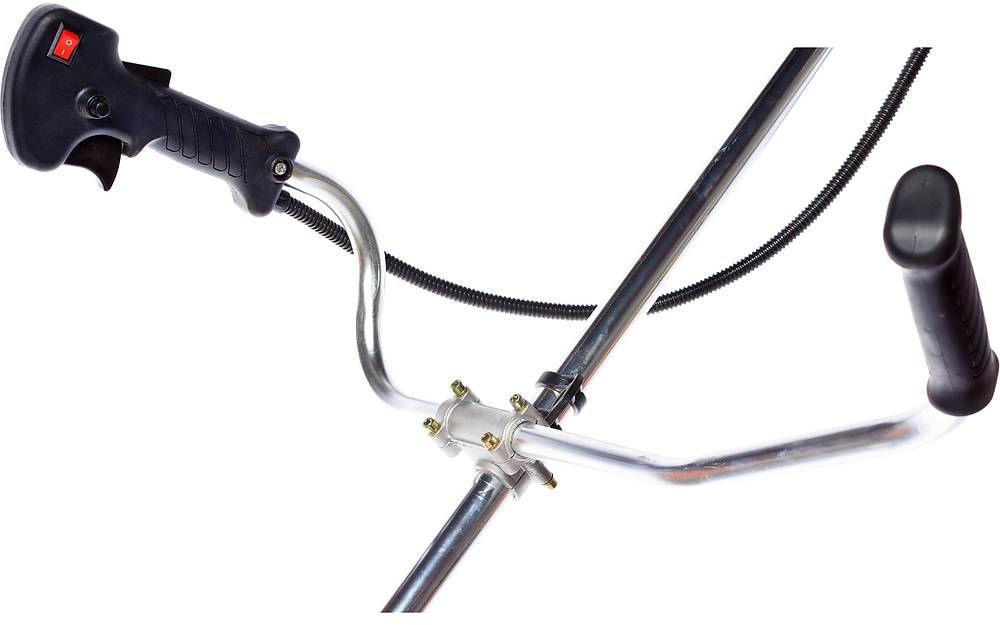 Прямая неразъемная штанга с эргономичной «велосипедной» рукояткой. Литое крепление «велосипедной» рукоятки.