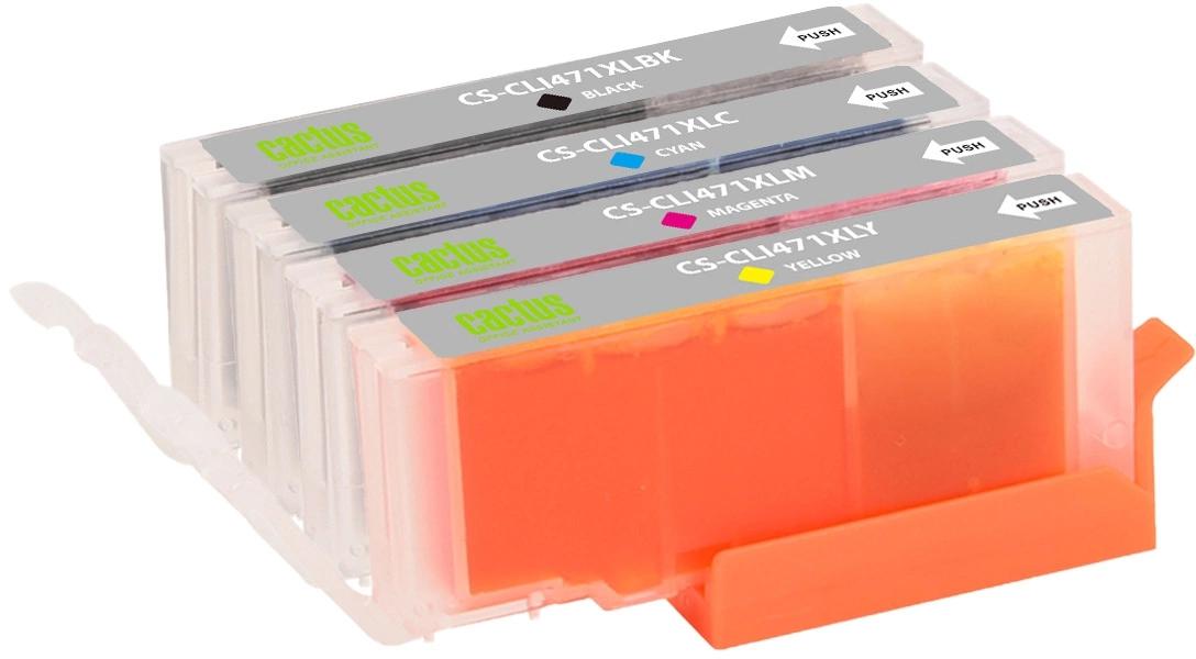 Картридж струйный Cactus CS-CLI471XLBK/M/C/Y CLI-471XL фото черный/голубой/пурпурный/желтый набор (43.2мл) для Canon TS5040/MG5740/MG6840/MG7740 с чипом