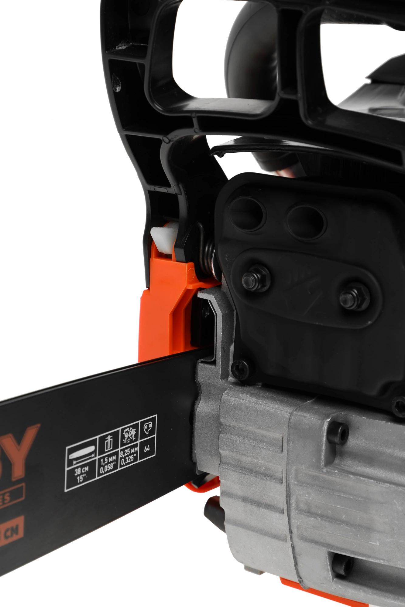 Топливная помпа облегчает запуск в сложных климатических условиях. Материал корпуса устойчив к низким температурам. Система Quick Start для облегчения запуска. Легкий доступ к фильтрующему элементу. Регулируемая система смазки цепи. Система защиты от вибрации.