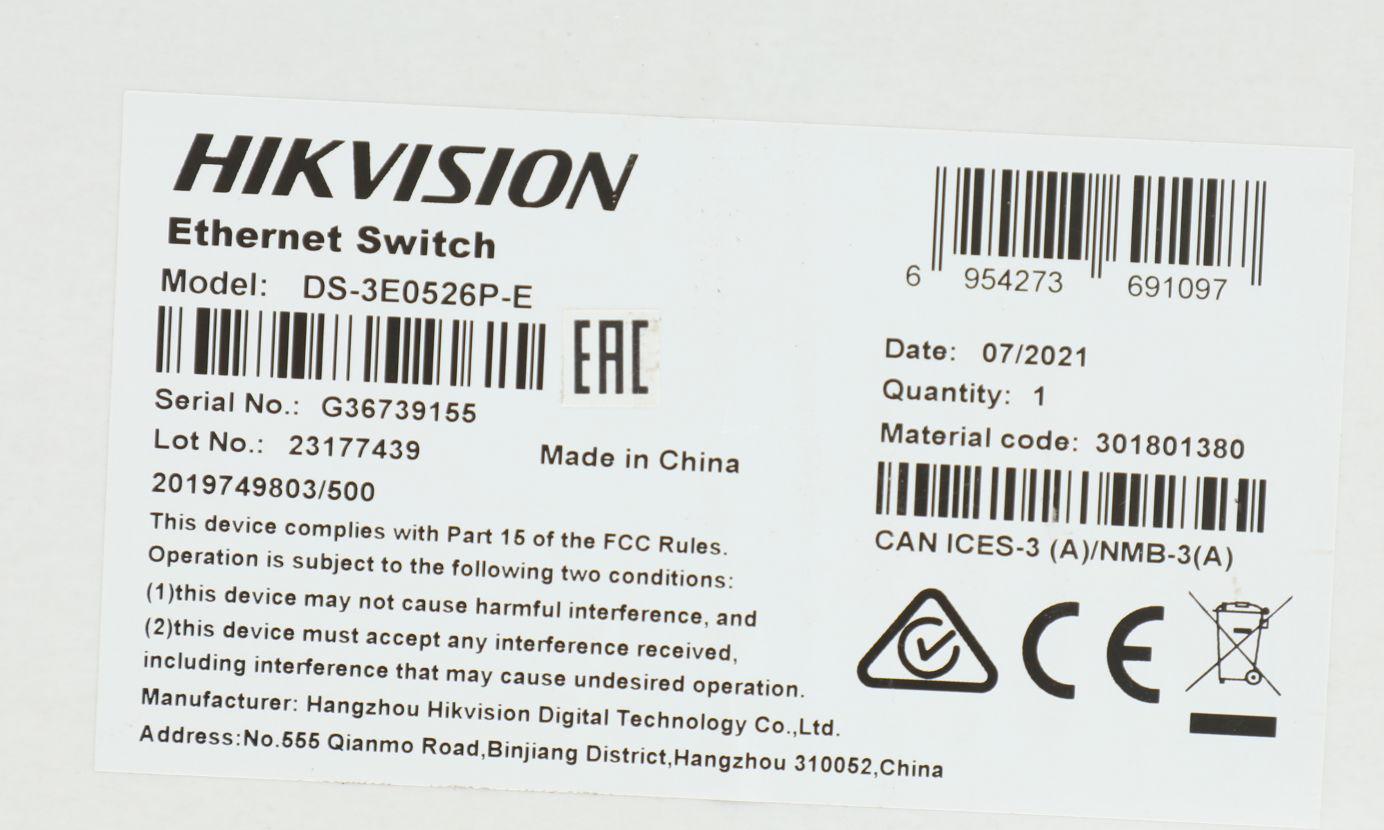 Коммутатор Hikvision DS-3E0526P-E 25x1Гбит/с 1SFP 24PoE+ 270W неуправляемый