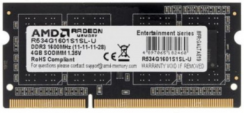 Память DDR3 4GB 1600MHz AMD R534G1601S1SL-U R5 RTL PC3-12800 CL11 SO-DIMM 204-pin 1.35В Ret