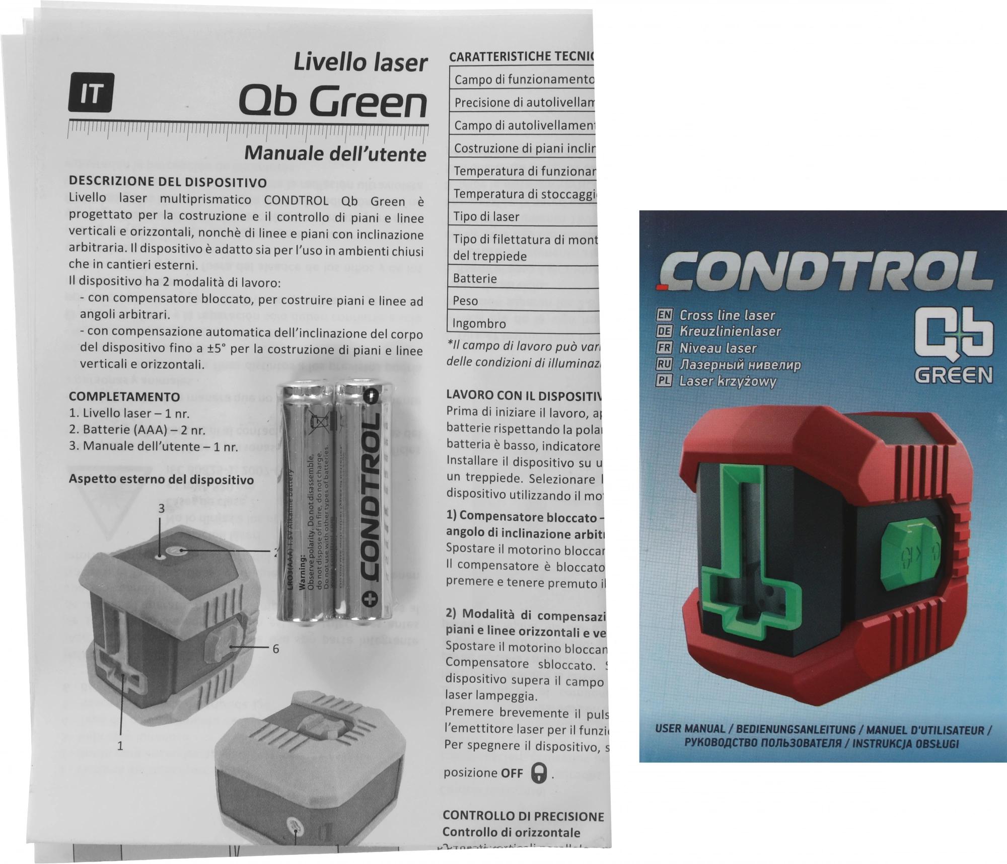 Нивелир лазерн. Condtrol QB Green 2кл.лаз. 520нм цв.луч. зеленый 2луч. (1-2-304)