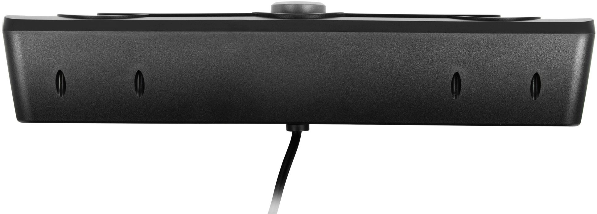 Стильный саундбар со звуковой схемой 2.0; поддержка Bluetooth; черный матовый корпус; синяя подсветка; удобная ручка управления.Длина кабеля 1.3 метра