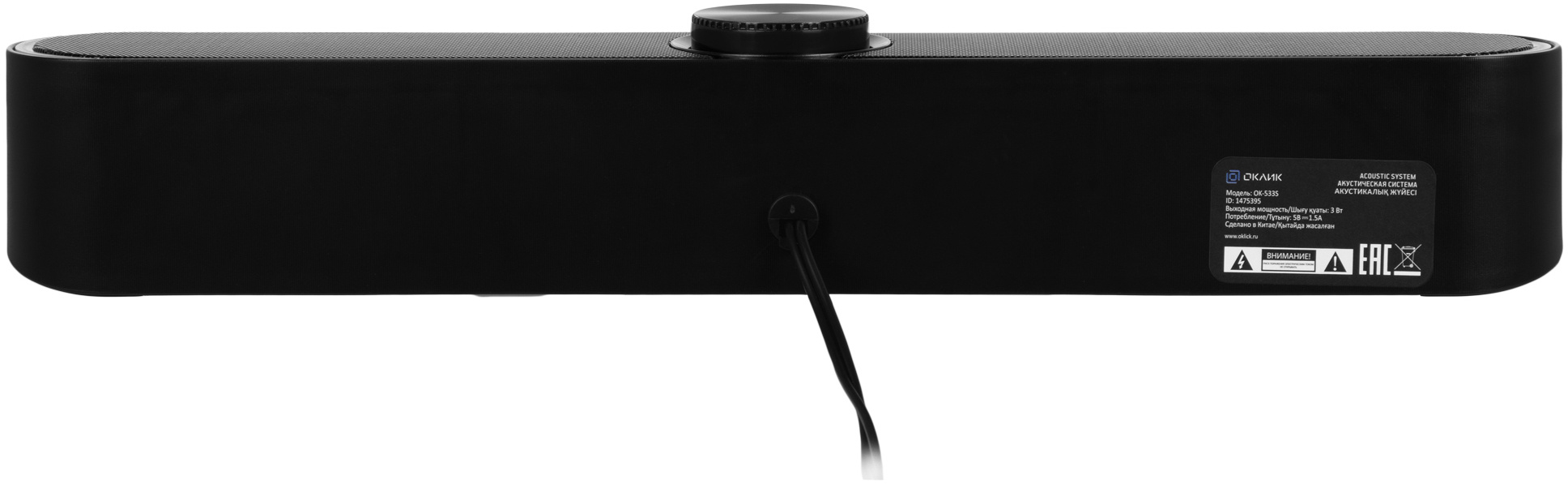 Стильный саундбар со звуковой схемой 2.0; поддержка Bluetooth; черный матовый корпус; синяя подсветка; удобная ручка управления.Длина кабеля 1.3 метра