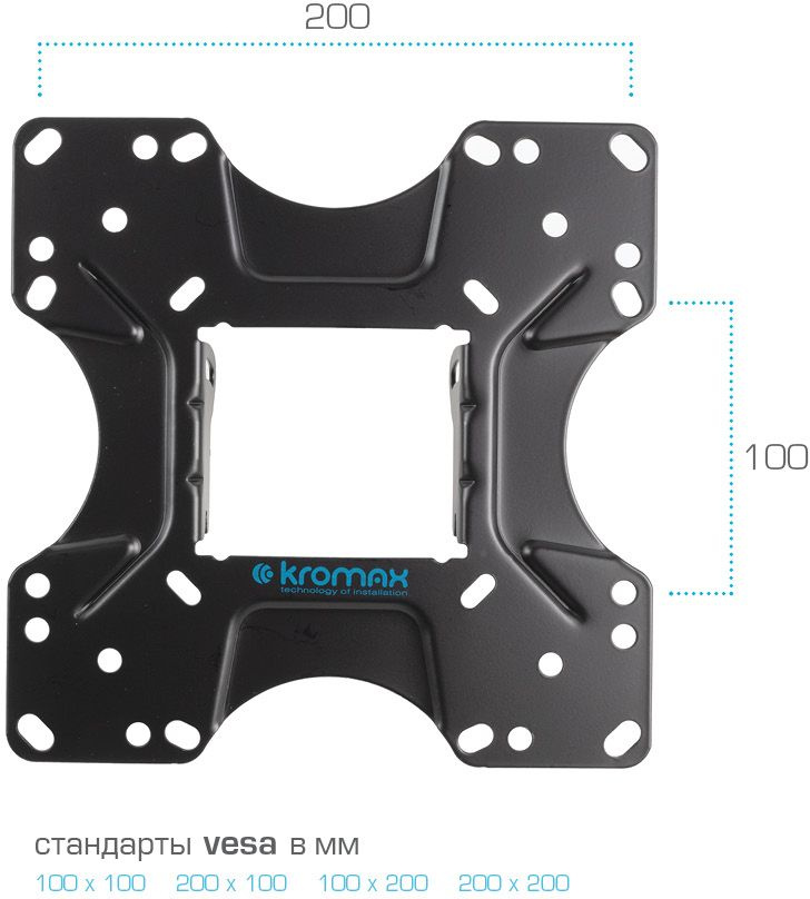Легкий монтаж при помощи съемной монтажной пластины. Надежная стальная конструкция. Универсальный телевизор на кронштейне можно наклонить, повернуть и сдвинуть к стене. Декоративные накладки. Кабель-канал.