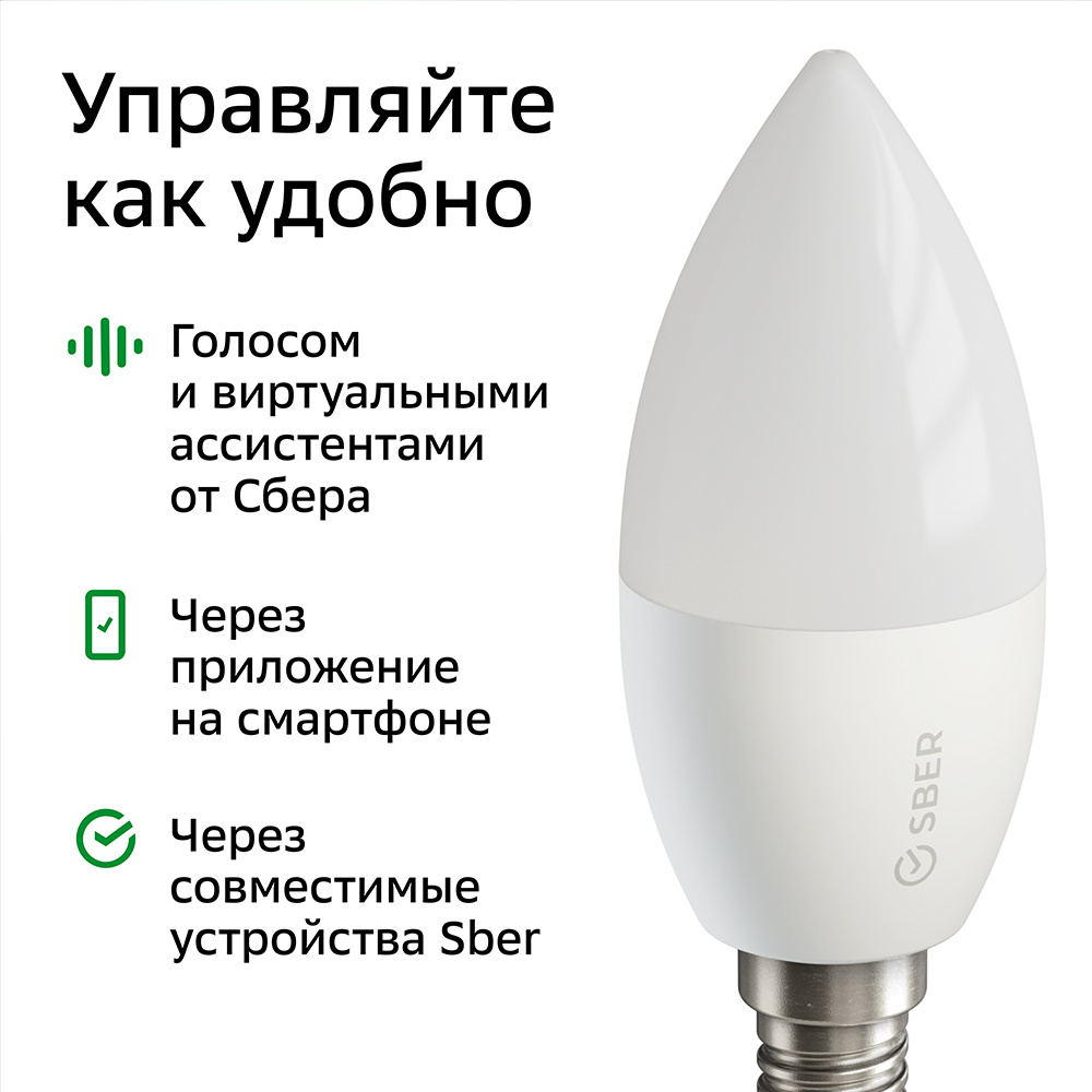 Умная лампа SberDevices E14 - 1 шт., гарантийный талон, инструкция пользователя, коробка