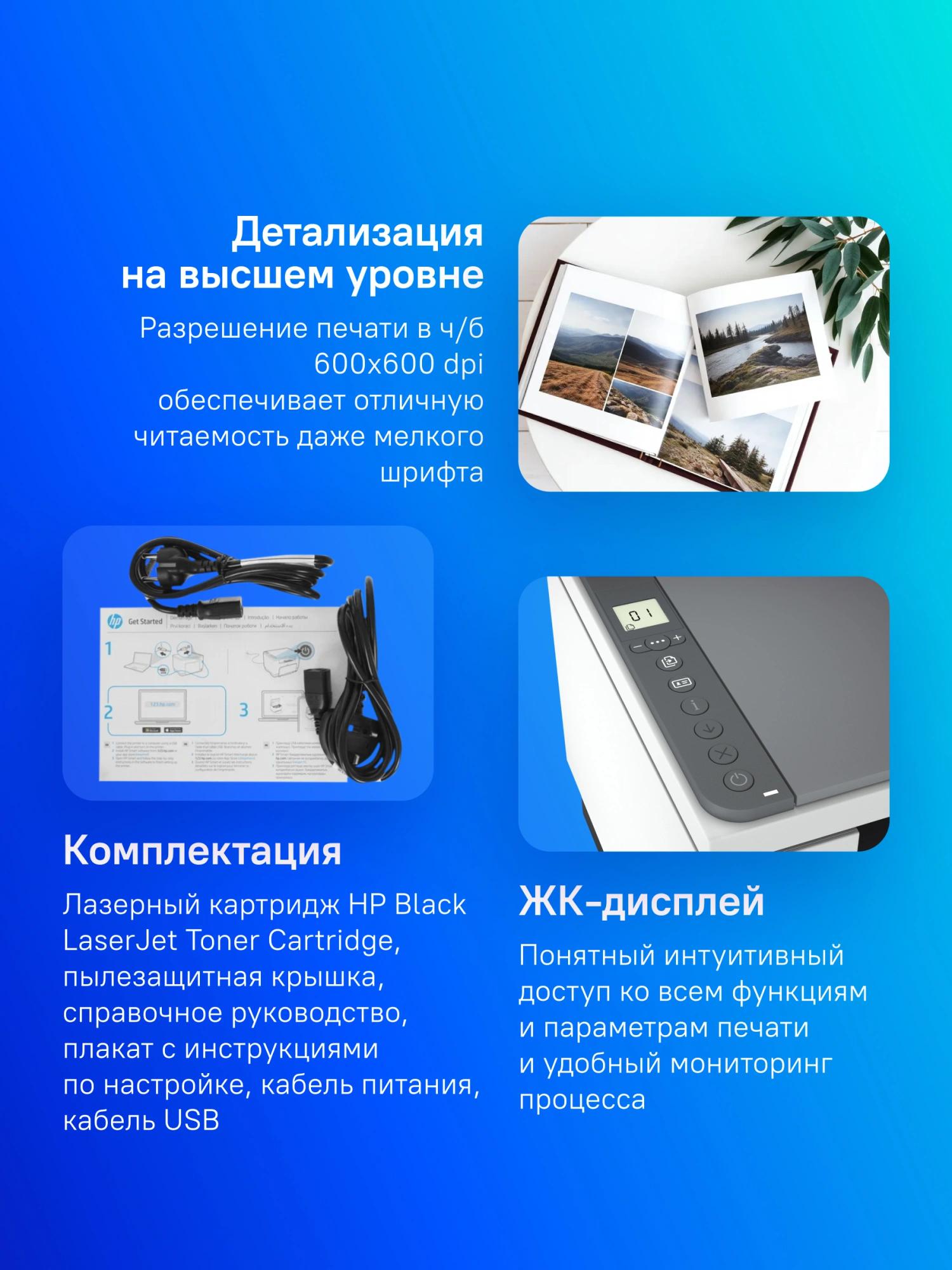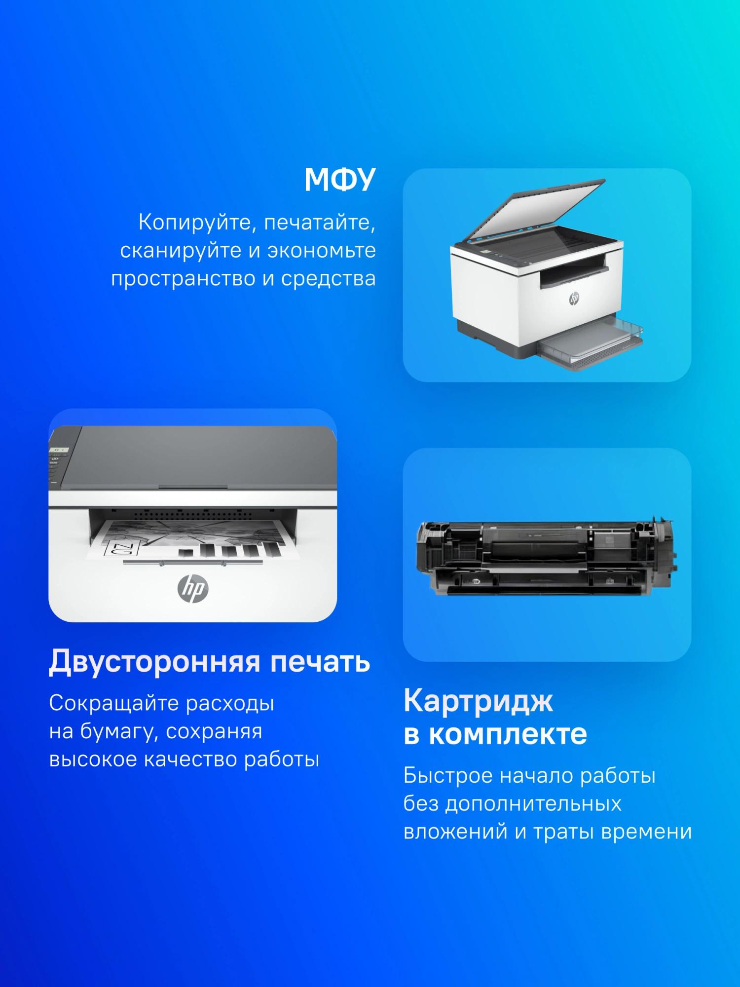 МФУ HP LaserJet M236d; лазерный картридж HP Black LaserJet Toner Cartridge (ресурс 700 страниц); пылезащитная крышка; справочное руководство; плакат с инструкциями по настройке; кабель питания; кабель USB