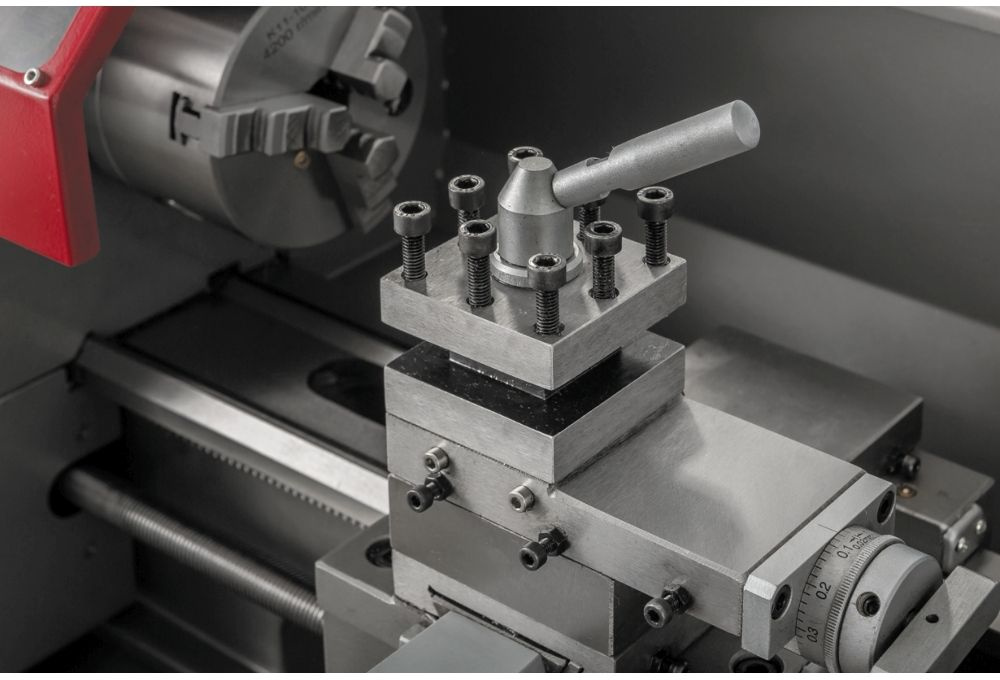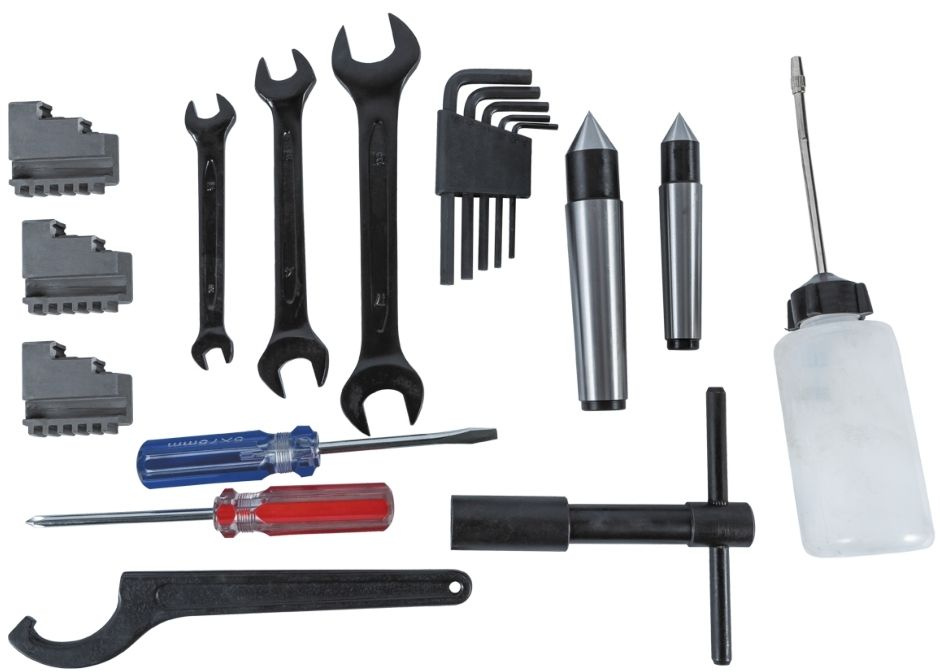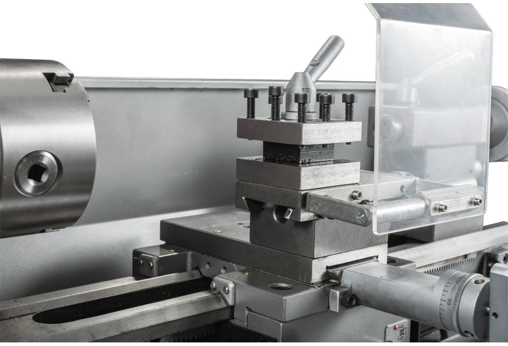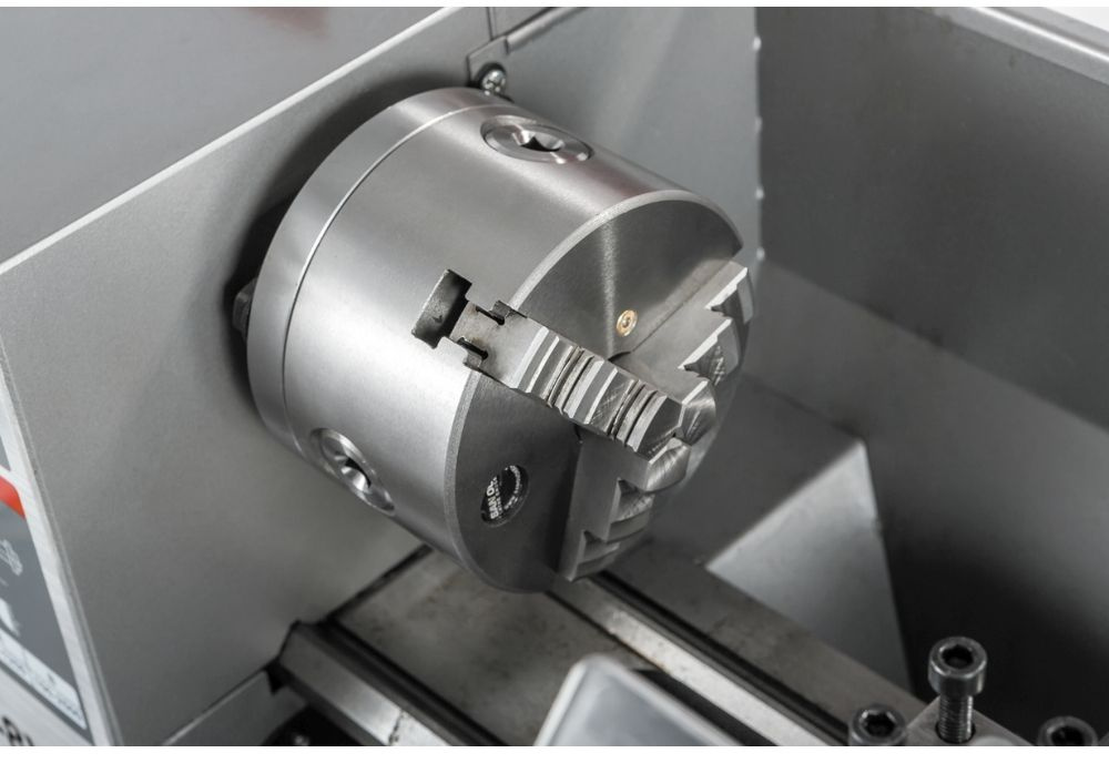 Станок токарный, Невращающийся центр МК-3, Невращающийся центр МК-2, 3-x кулачковый патрон 100 мм с обратными кулачками, Защитная крышка патрона с концевым выключателем, 4-х позиционный резцедержатель, Поддон для сбора стружки.