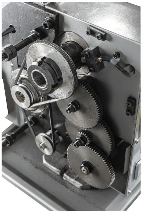 Особенностью станка BD-8VS является наличие плавной регулировки скорости в двух диапазонах, диапазоны меняются путем перекидывания ремня на шкивах. Всего диапазона два от 50 до 1250 и от 100 до 2500. Плавная регулировка позволяет подобрать режимы резания под любой тип материала.