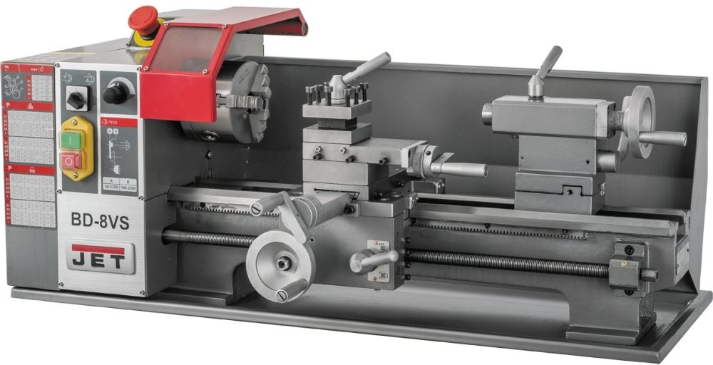Станок JET BD-8VS – несмотря на свои маленькие габариты станок способен обрабатывать заготовку диаметром до 210 мм над станиной, а если точить над суппортом, то этот диаметр уменьшается до 135 мм. При этом максимальная длина обработки (РМЦ) составляет внушительные 400 мм.