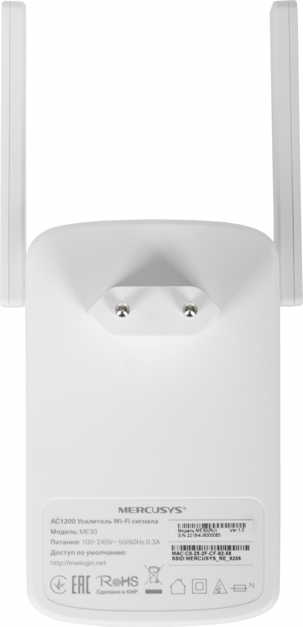 Усилитель Wi-Fi сигнала Mercusys ME30 с регулируемыми антеннами и высоким коэффициентом усиления позволит без труда увеличить покрытие Wi-Fi роутера и избавиться от зон со слабым Wi-Fi сигналом. Подключайтесь к Wi-Fi на высокой скорости из любой комнаты!