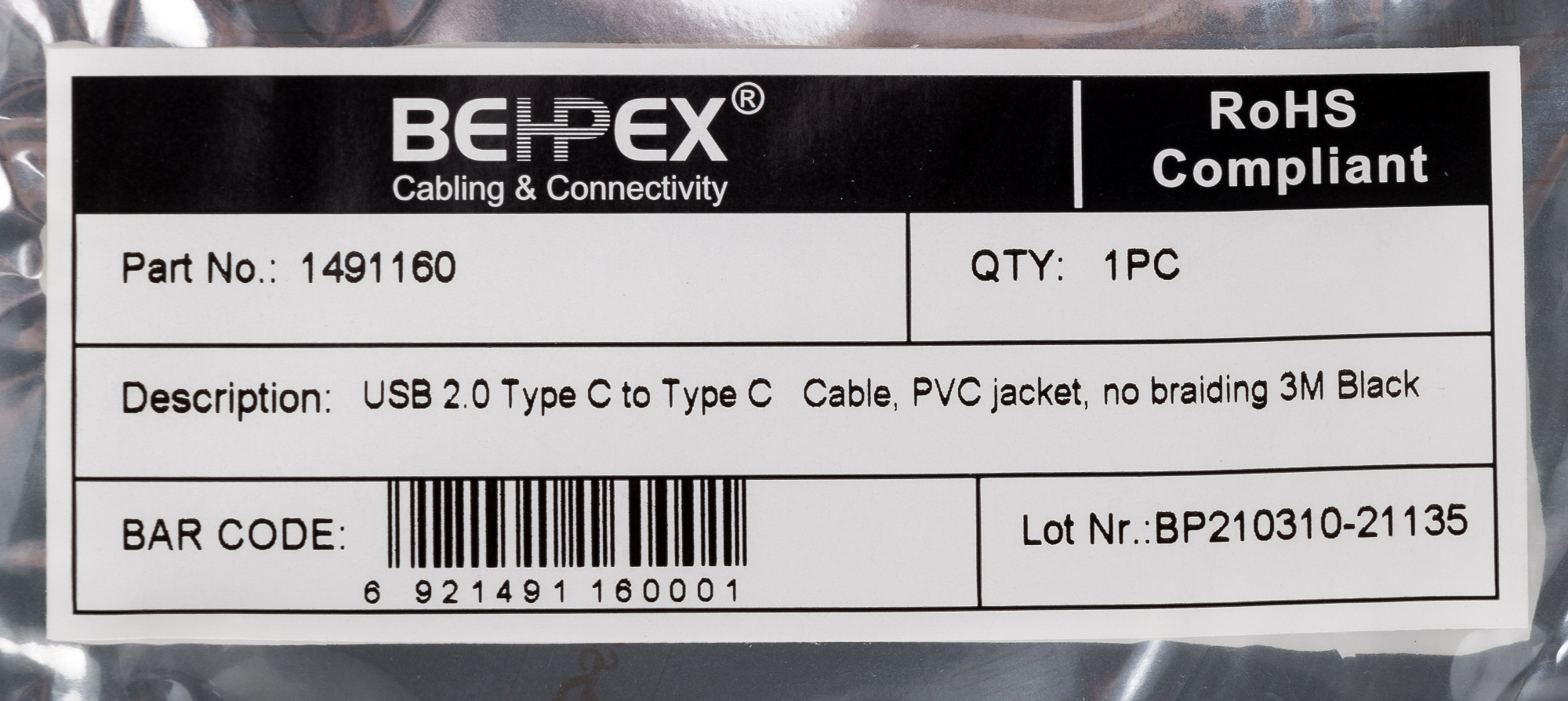 Кабель USB Type-C (m)-USB Type-C (m) 3м черный