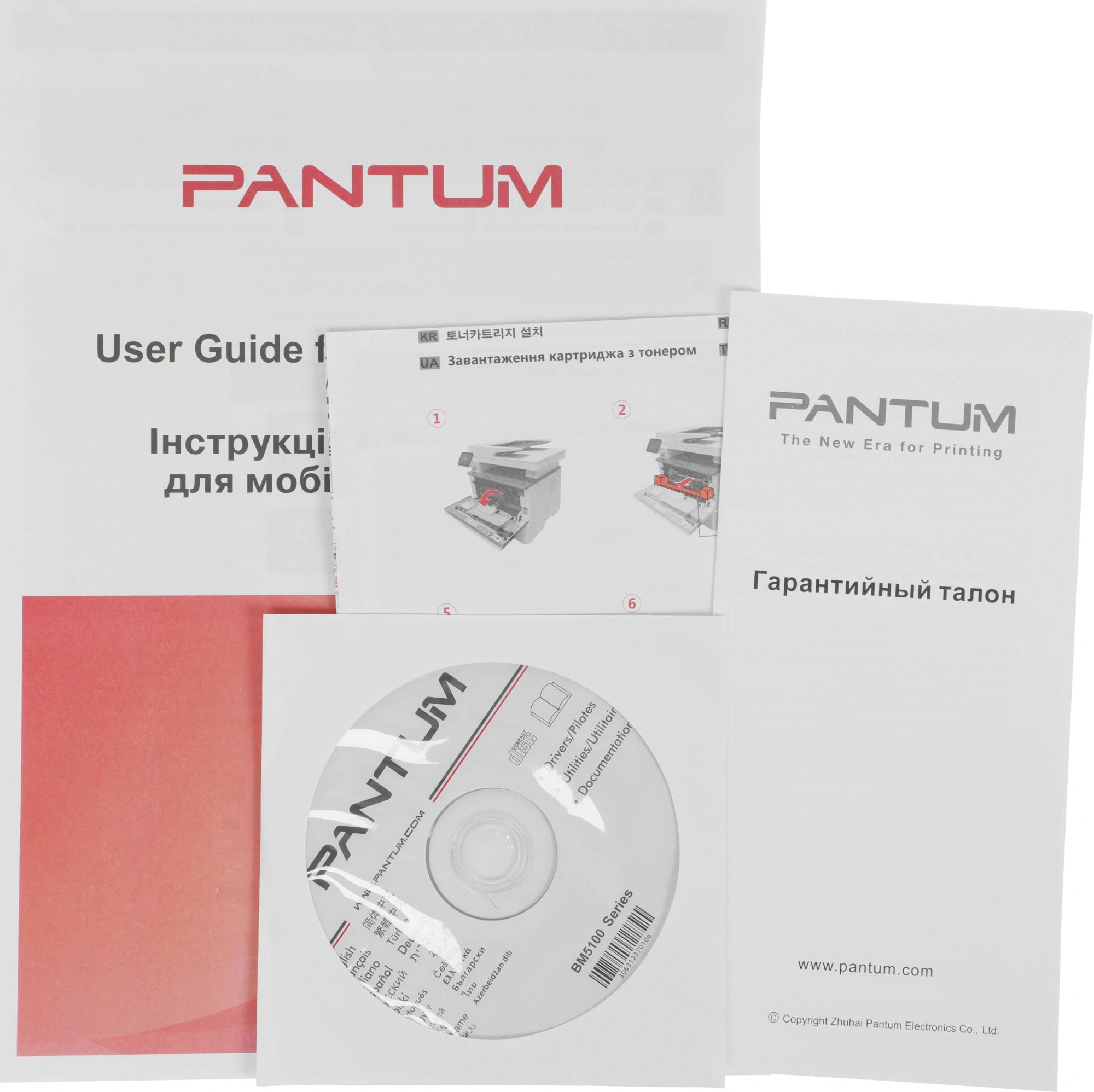 МФУ Pantum. Стартовый картридж: TL-5120: 3, 000 страниц. Стартовый барабан: DL-5120: 30, 000 страниц. Краткое руководство по установке. Шнур питания. USB кабель для подключения к компьютеру. Гарантийный талон. CD с драйверами и документацией.