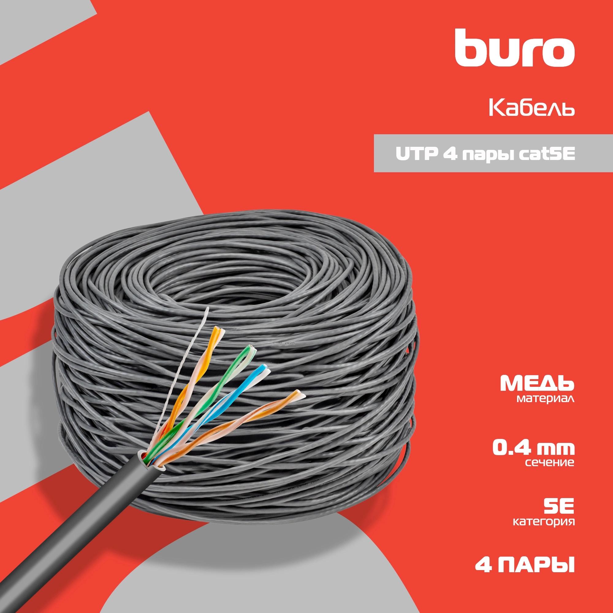 Кабель сетевой Buro BU-COP-040 UTP 4 пары cat.5E solid 0.40мм Cu 305м серый