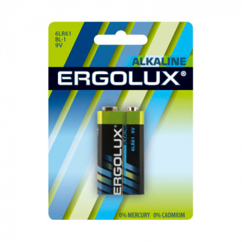 Батарея Ergolux Alkaline 6LR61 BL-1 9V 600mAh (1шт) блистер