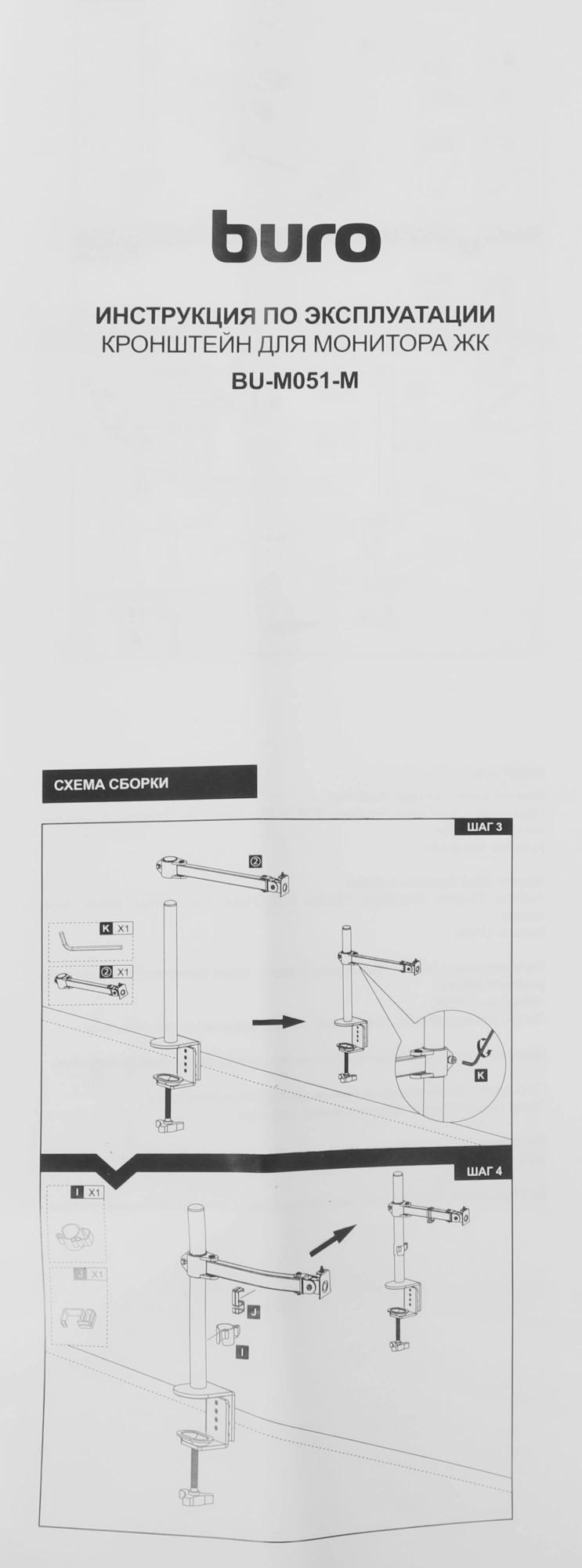 Кронштейн для мониторов ЖК Buro BU-M051-M черный 17"-32" макс.8кг крепление к столешнице поворот и наклон