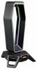 Эргономичная подставка под гарнитуру со встроенной звуковой картой и предустановленным EQ (3 режима), 12 режимов RGB-подсветки, USB-HUB с 3-мя портами и возможностью одновременного подключения нескольких устройств.2*Jack 3.5 (микрофон и аудио- входы).Прорезиненная накладка на основании.Кабель1, 5 м.