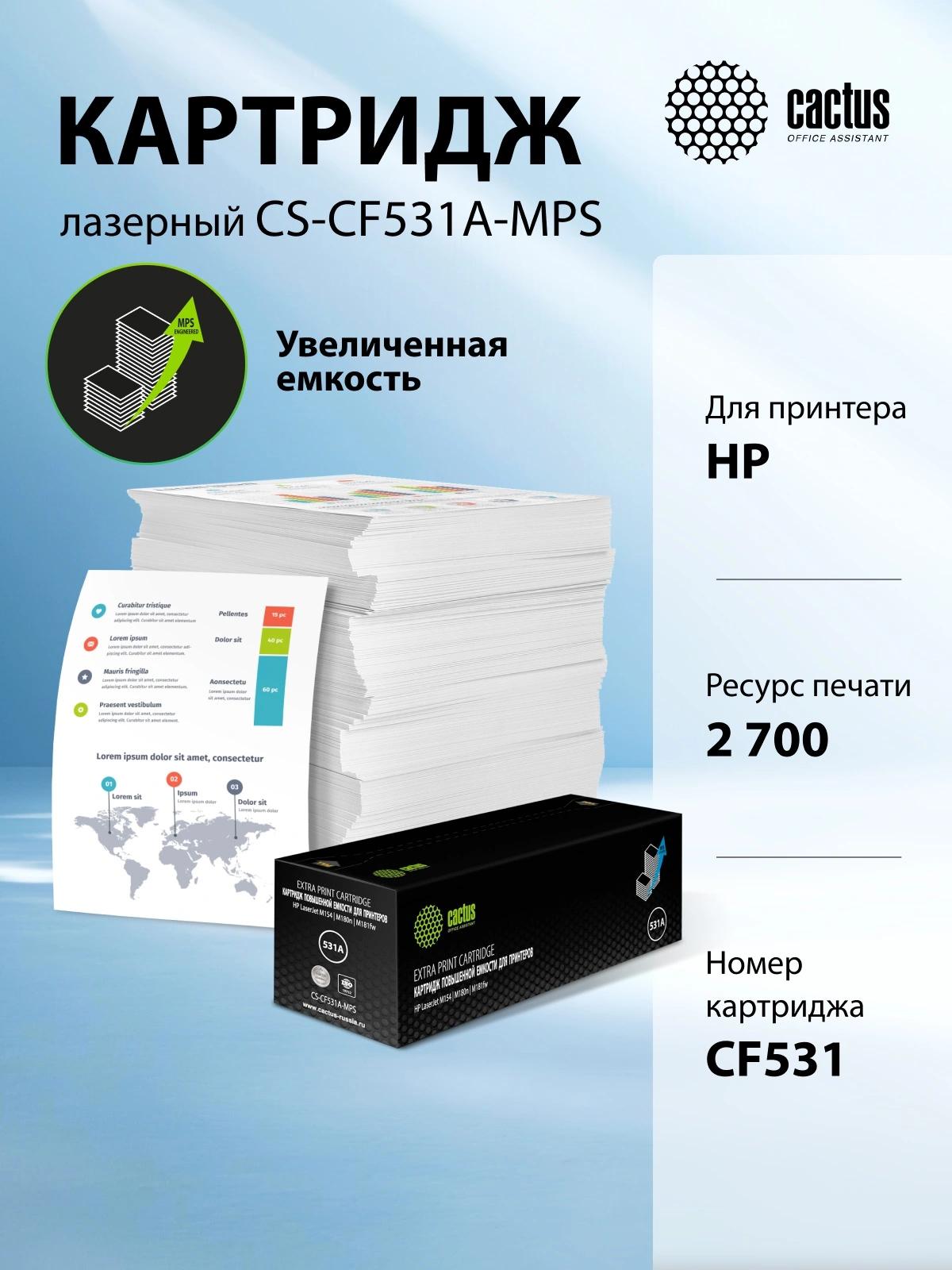 Картридж лазерный Cactus CS-CF531A-MPS CF531X голубой (2700стр.) для HP CLJ Pro M154a/M154nw/MFP M180n/M180nw/M181fw