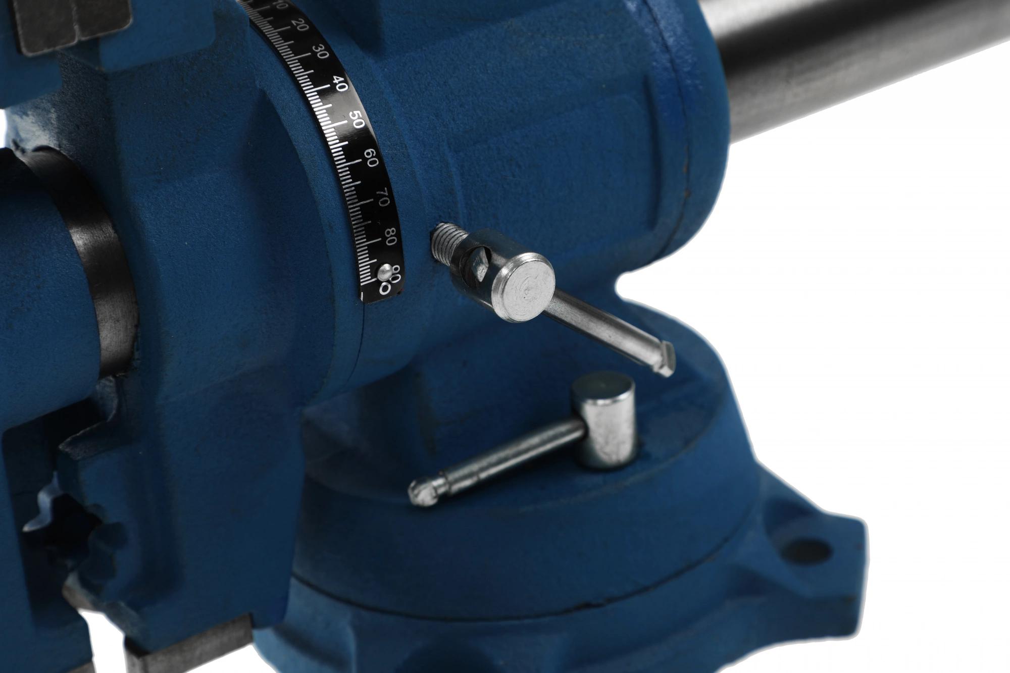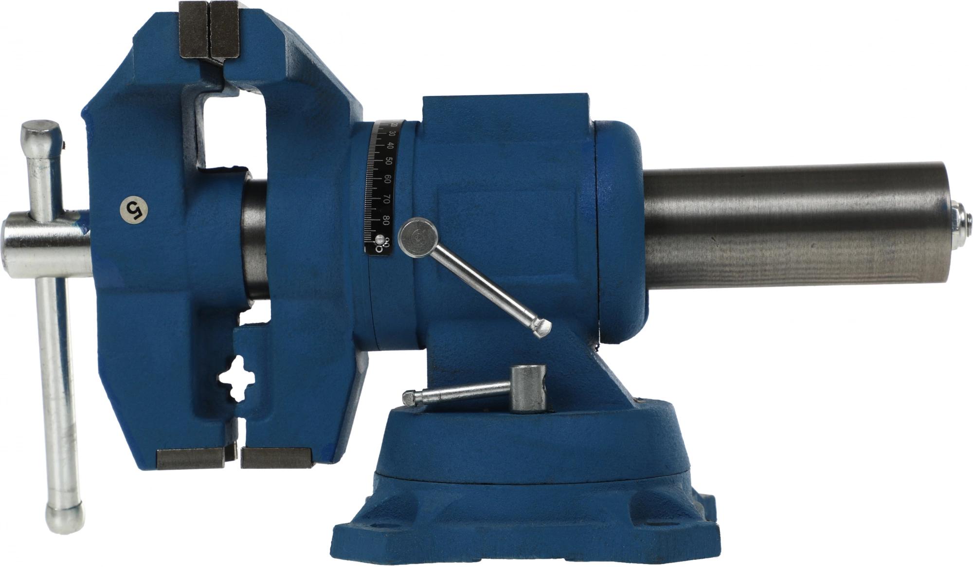 Профессиональный многофункциональный инструмент из высококачественного чугуна и возможностью повторота в двух плоскостях на 360 градусов. Поворотное основание позволяет перемещать корпус тисков в горизонтальной плоскости на угол от 0 до 360 градусов.