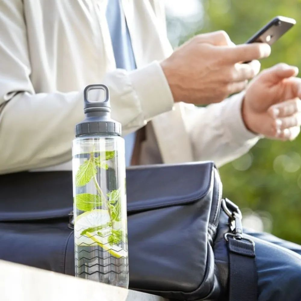 Поддерживайте оптимальный водный баланс всей семьей с многоразовыми питьевыми бутылками Drink2Go. Бутылка на 100% герметична, безопасна и экологична – она выполнена из прочного и легкого тритана и украшена узором с волнами.