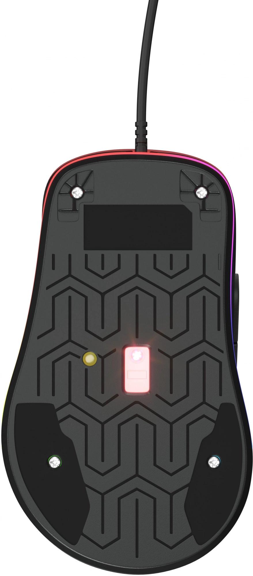 Игровая компьютерная мышь с зеркальной поверхностью. Динамическая подсветка с изменением режимов работы (кнопка управления подсветкой на нижней панели). Кабель в прочной оплетке. Магнитный фильтр, позолоченный коннектор.