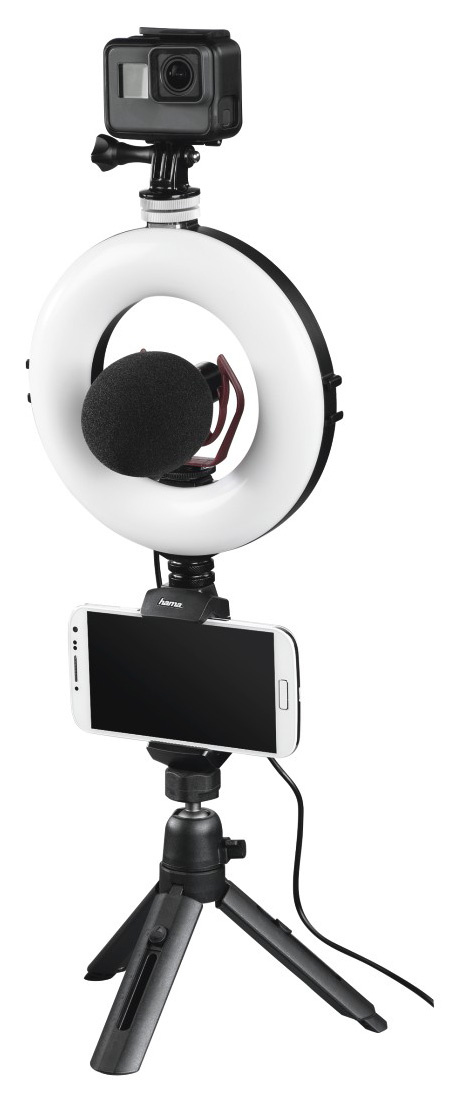 кольцевой светильник, штатив, пульт ДУ Bluetooth, держатель смартфона, инструкция по эксплуатации, чехол для транспортировки и хранения