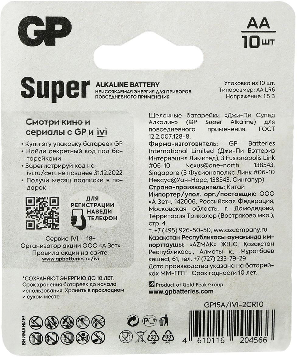 GP Super Alkaline AA - щелочные батарейки повышенной энергоёмкости и низкого уровня расхода заряда. Популярный"пальчиковый" типоразмер позволяет использовать алкалиновые батарейки в широком спектре приборов: фонари, диктофоны, настенные часы, будильники, различные ПДУ и игрушки на радиоуправлении